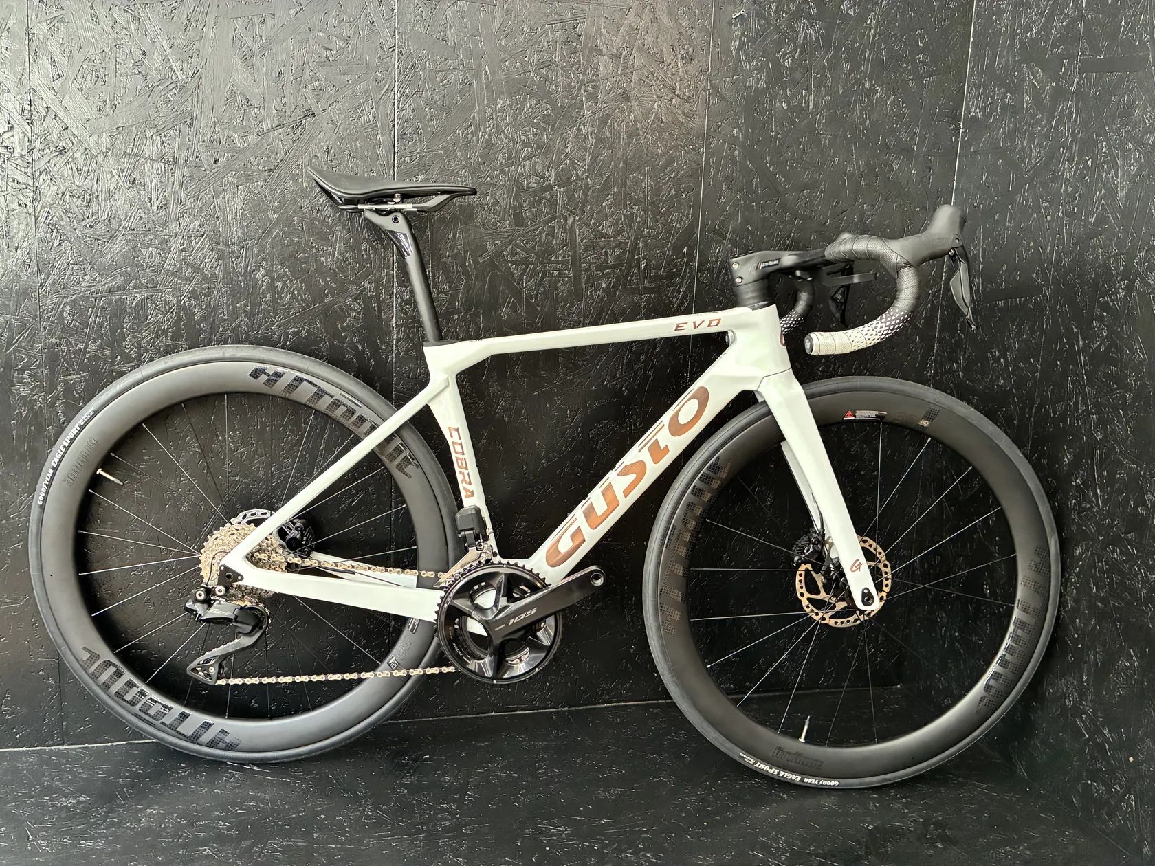Nabízím k prodeji nové kolo značky Gusto , karbonový rám , karbon sedlovka , karbon cocpit včetně držáku na Garmin , zapletené karbon kola Attac 50 mm , kompletní sada Shimano 105 Di2 ( možnost i Shimano 105 mechanika nebo Ultegra Di2 , kolo je ve velikostech XS , S , M , M/L , L, XL , na kola poskytuji standartní záruku , doklad o zakoupení , pozáruční servis samozřejmostí . Možno i za doplatek zapletené kola značky ENVE