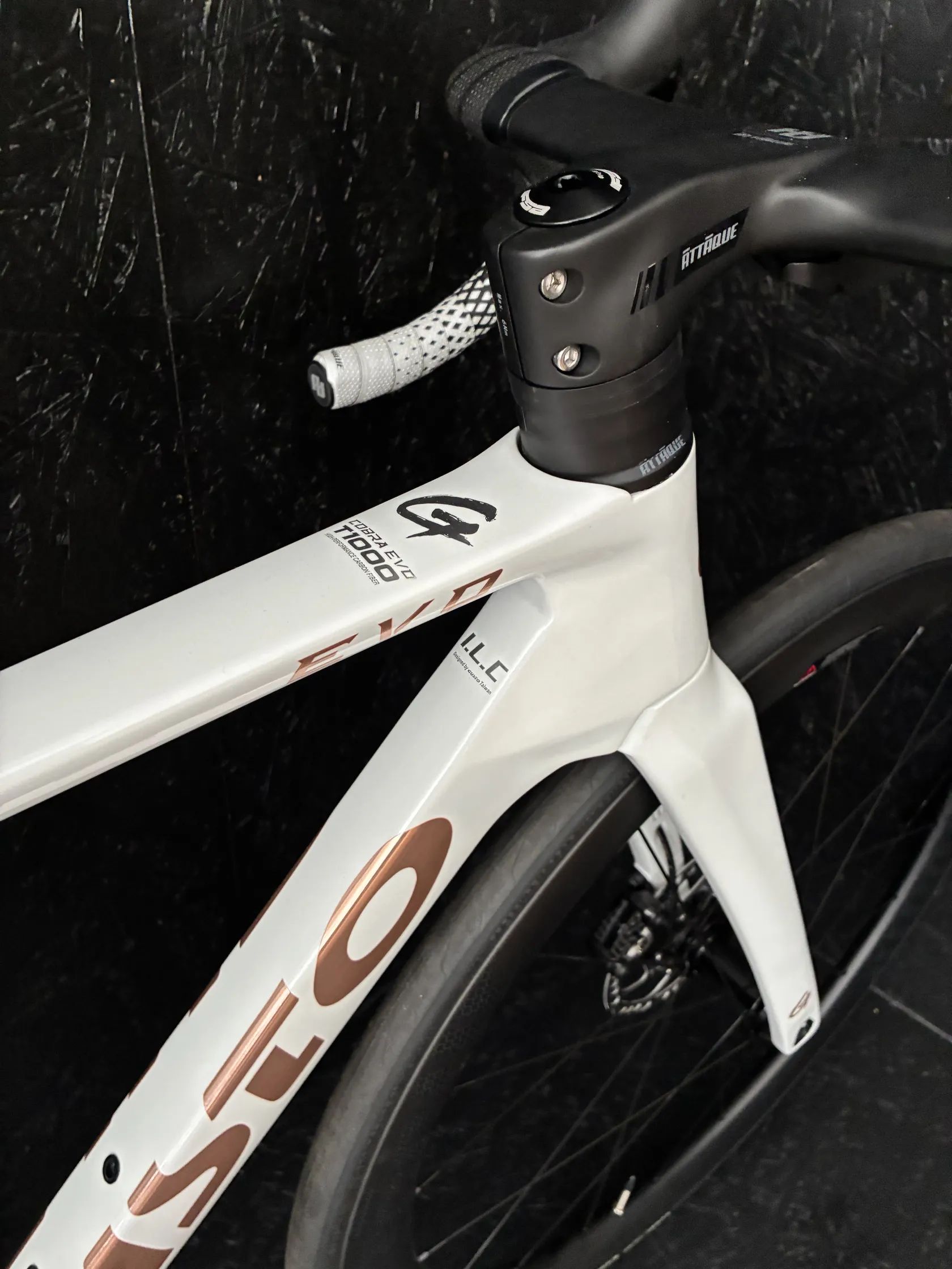Karbonový rám, karbonová sedlovka, karbonový cockpit (včetně držáku na Garmin) – lehké, tuhé a moderní provedení