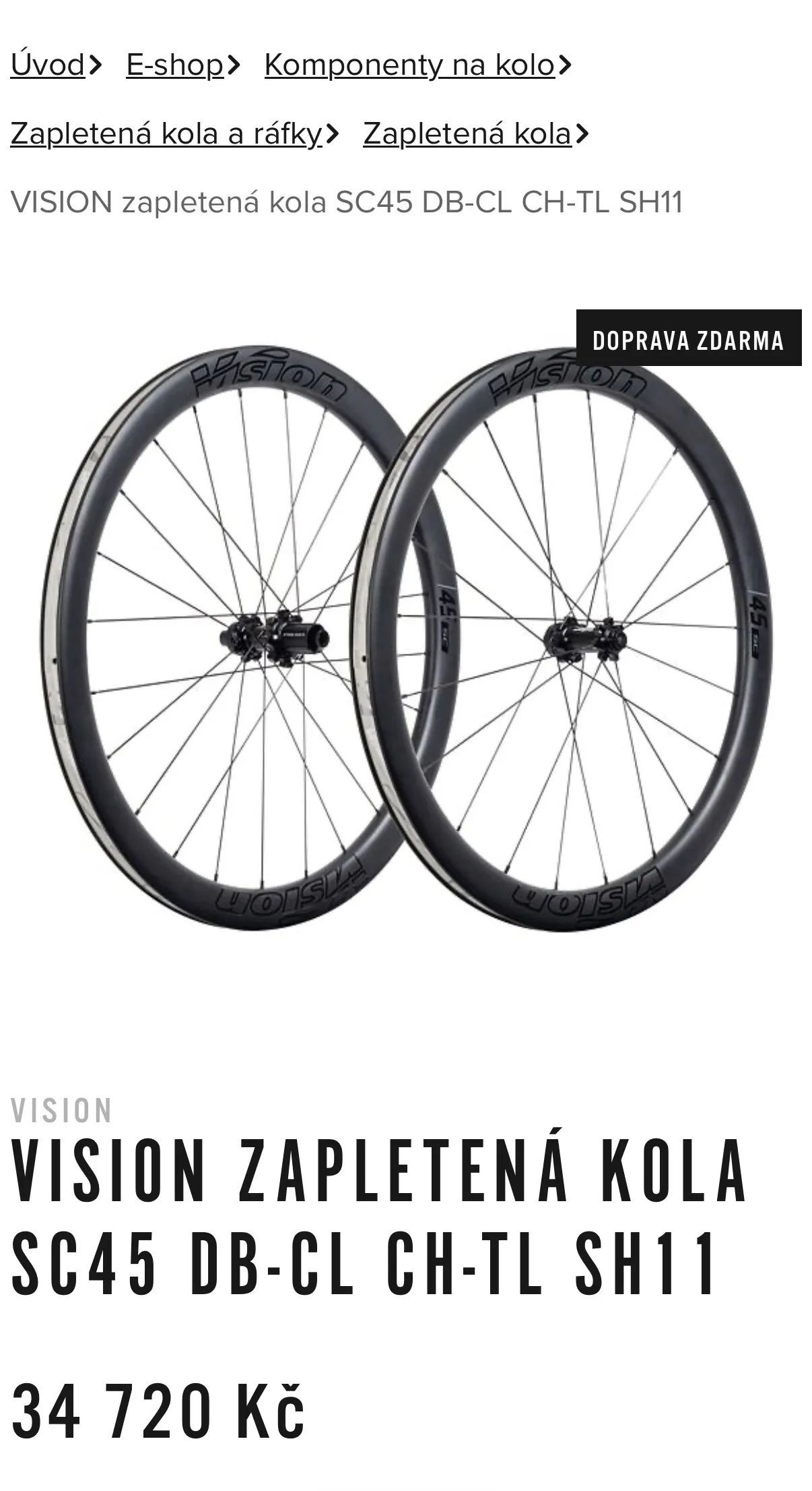 Pozor! Kolo prodáváno na nových kolech Vision SC45.