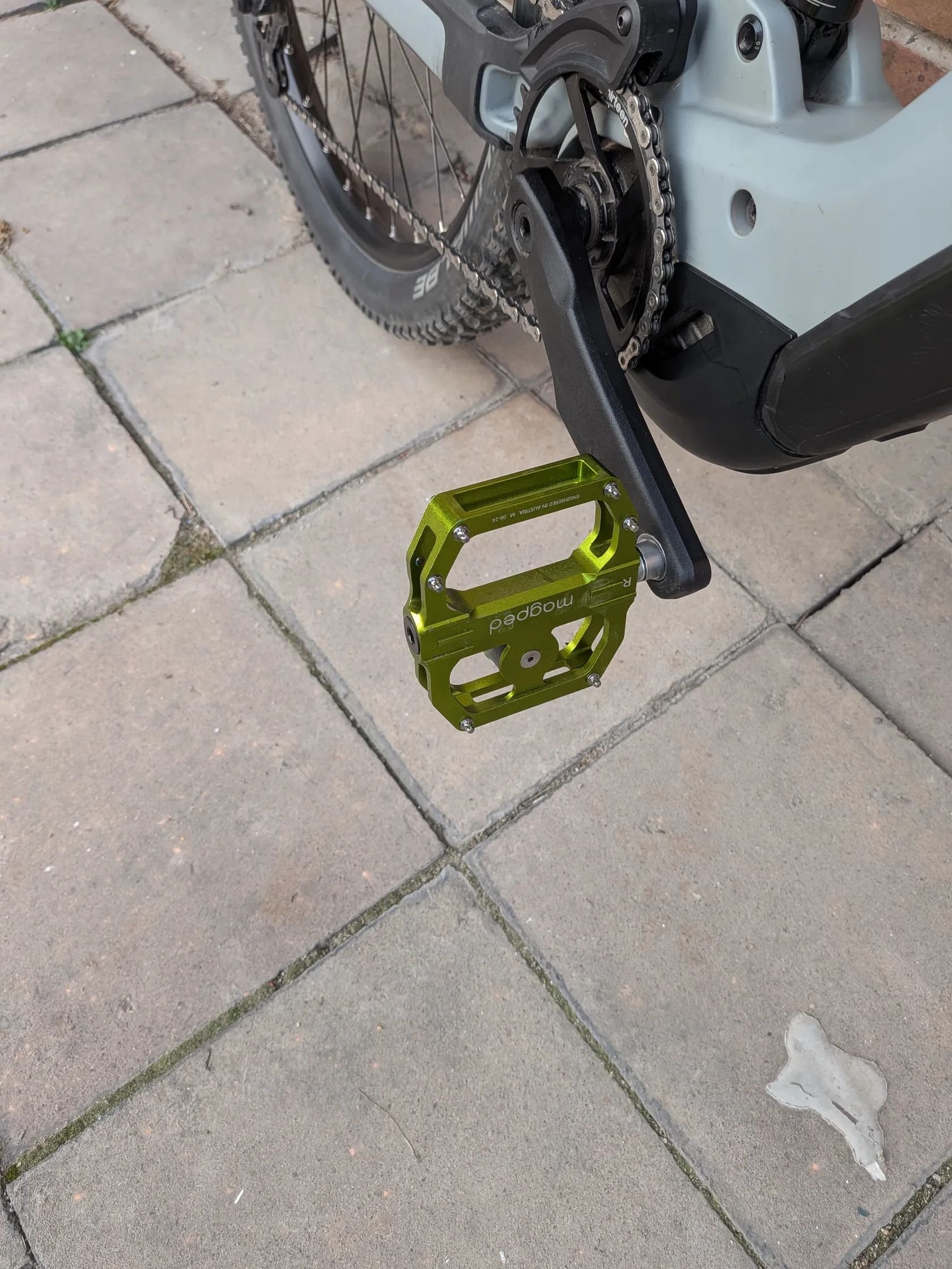 - Náboje s ložisky a ráčnou, gripy Odi Tinker, nové magped pedály, nový řetěz – praktická vylepšení, kolo připraveno k jízdě.