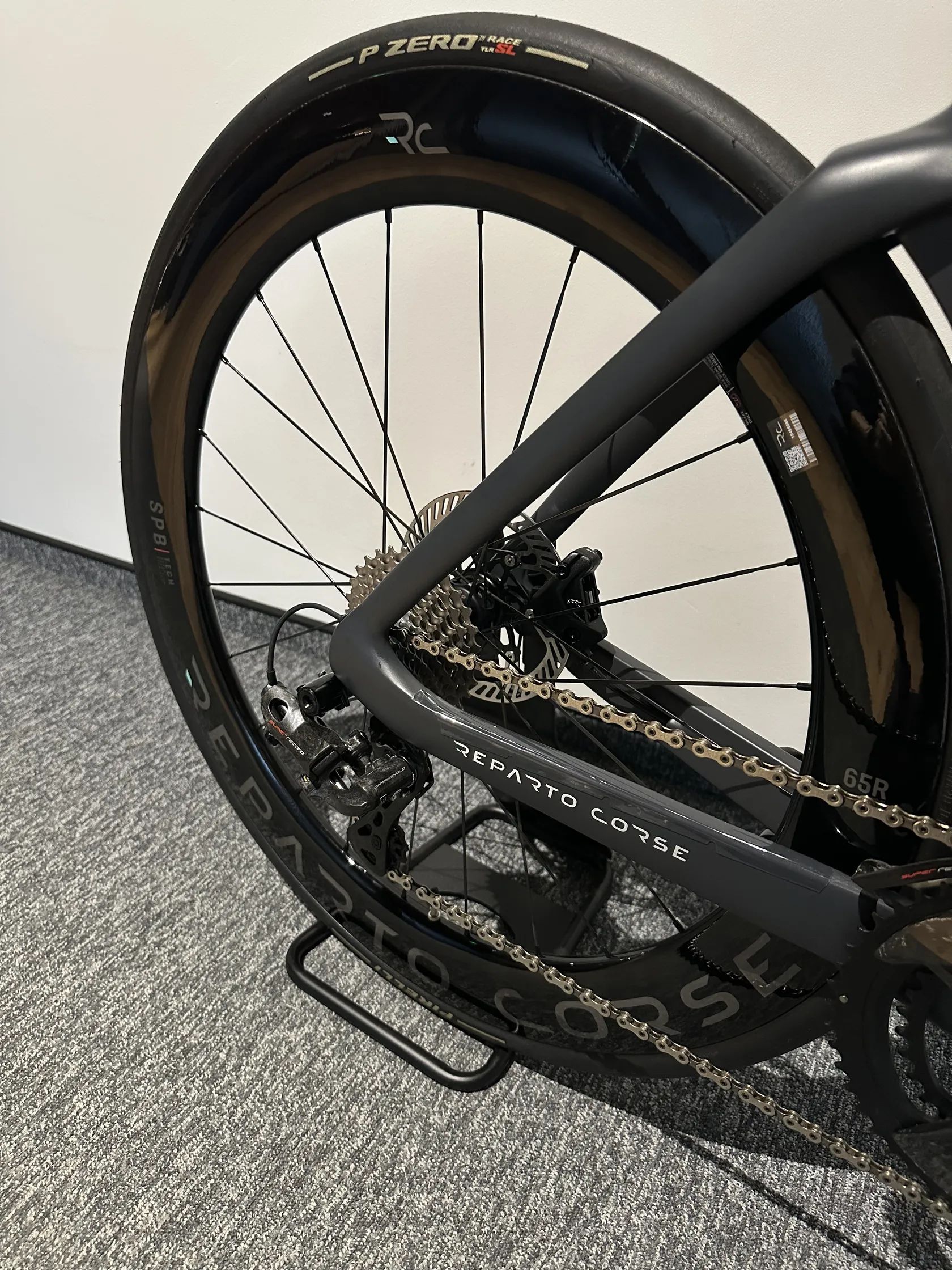 Karbonová kola Reparto Corse 65–50 mm, tubeless ready – typické pro závodní aero nastavení, vysoká tuhost a rychlost
