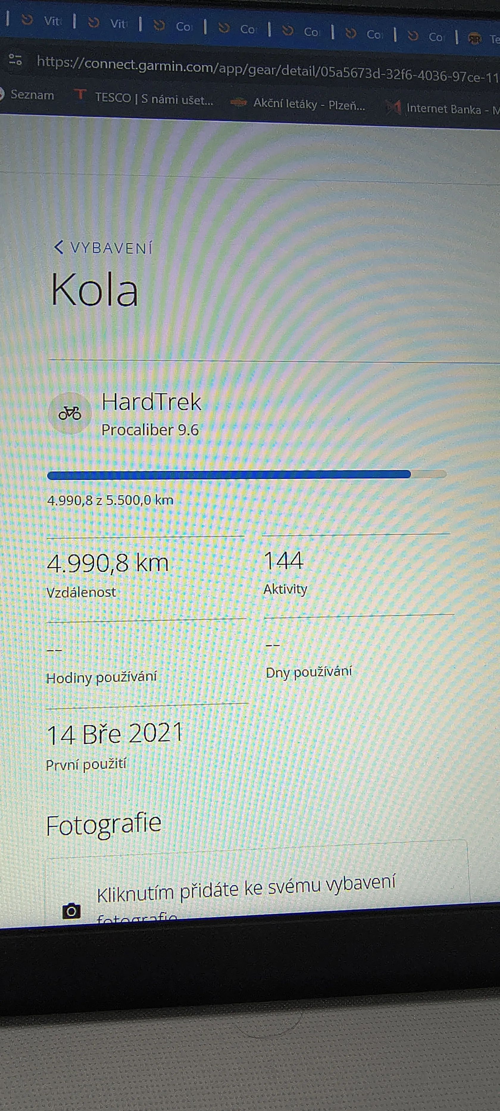 Výpis upgradů - řazení XT, řetěz XT, převodník SLX 34 zubů, brzdy SLX, kotouče SM-RT 66 a 76, středové složení MT800, sedlovka Bontrager Elite, gripy PRO Ergonomic Sport průměr 34,5mm, pedály PD-M520, košík Elite Carbon Mate - na fotce jeden, ale mohu jako bonus dát i druhý. Prodávám z důvodu nevyužití - po koupi fullu jsem kolo poslední dva roky vůbec nejezdil venku, ale pouze v trenažeru přes zimu. Kolo bylo standardně ježděné a nadstandardně opečovávané s bytovým parkováním. Doklad o koupi mám. Nájezd 4990,8 km - foto z Garmin Connect. Prodávám tak jak je na foto - s pedály a košíkem. K vyzkoušení v Plzni Křimicích, pouze osobní předání.