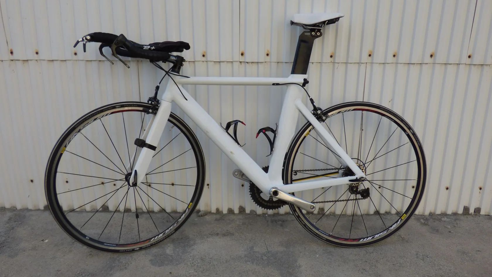 Z důvodu nevyužití posílám na zakázku dělané triatlonové kolo. Aero rám kombinace karbon/kov. S karbonovými koly rychlé. Sedlo dámské triatlonové Fizik. Kola karbon Spinolo 50mm (na zadním je potřeba vyměnit ořech). Jinak na Ultegře. Brzdy 105. Kliky Trimax. Převodník (pila) 52 Vision. Pedály kompozit Look