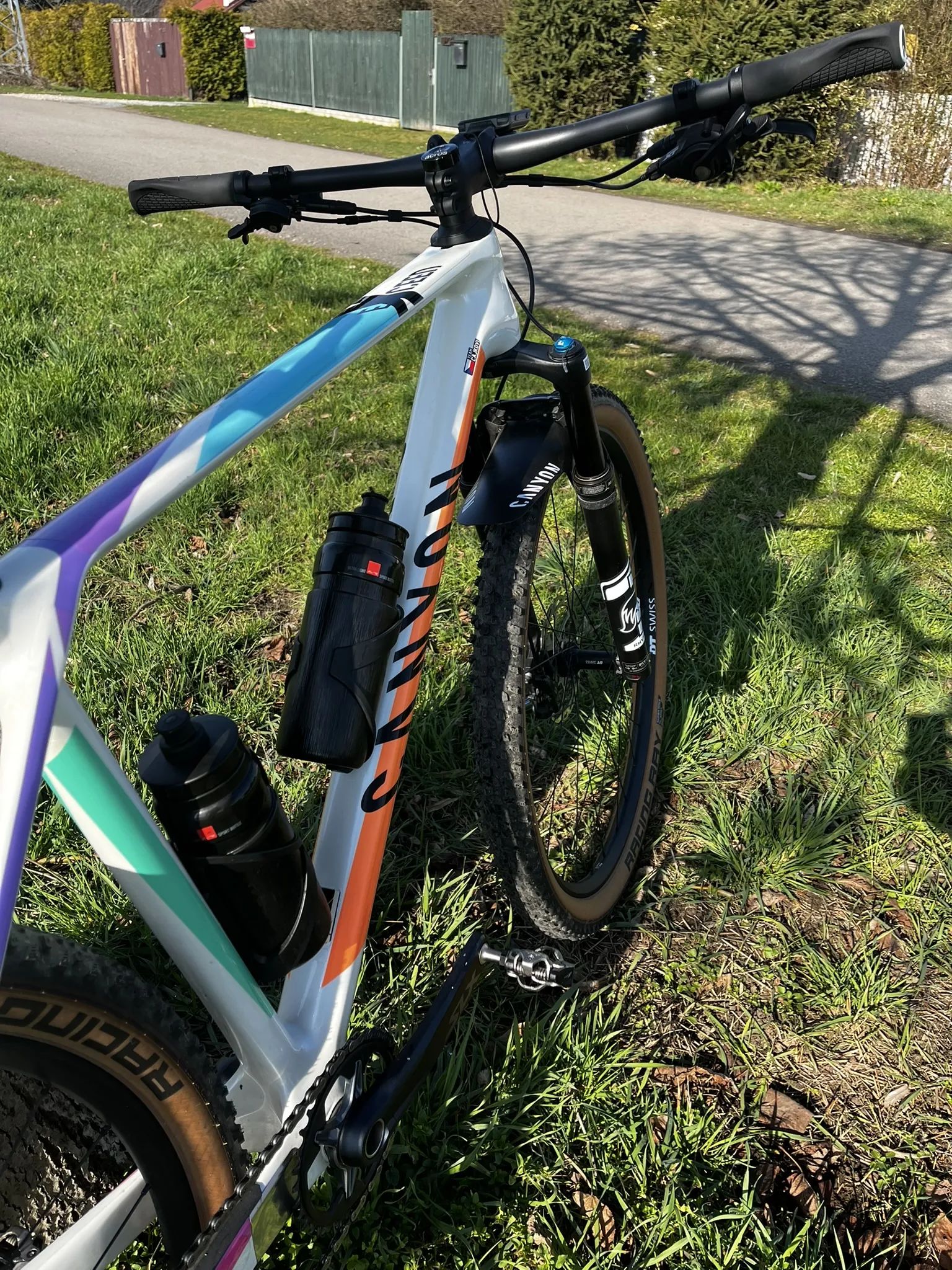 Oproti původní specifikaci nahozena karbon sedlovka Race Face NEXT SL, karbon říditka Canyon H21 Flat CF Handlebar, sedlo Selle Italia SLR Boost TM Superflow, XT hazka/řazení a kazeta (najeto 500km), plašté Ray/Ralph. Rám v záruce do 7/2028.