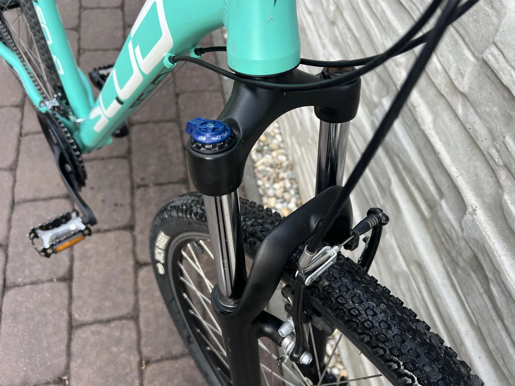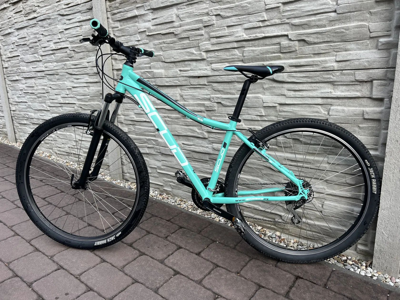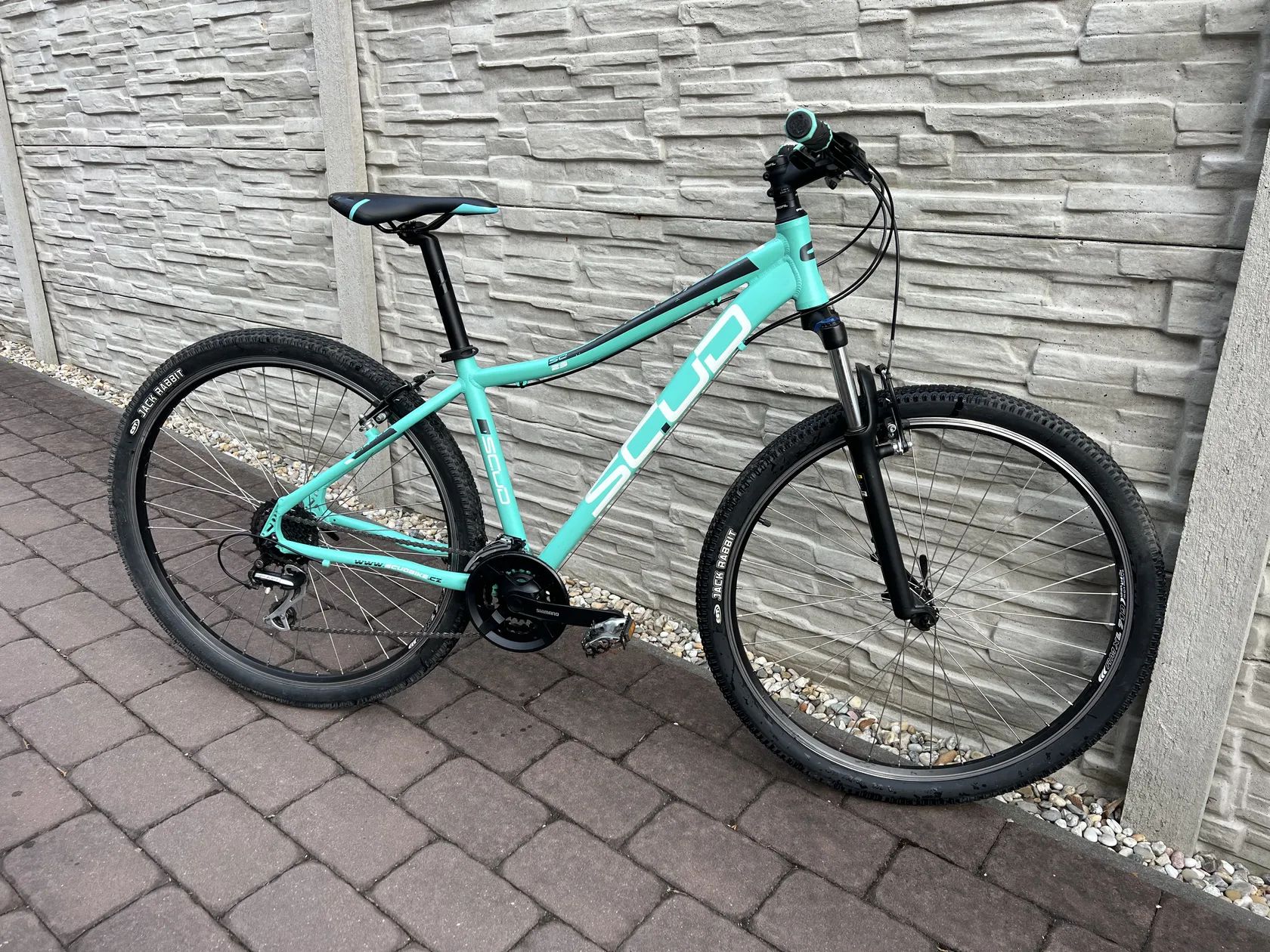 Prodám horské kolo značky SCUD v tyrkysové barvě. Kolo je v dobrém stavu, používáno jen minimálně slečnou. - hliníkový rám - odpružená přední vidlice - přehazovačka Shimano Acera 8s - ráfkové brzdy - převodník Tourney