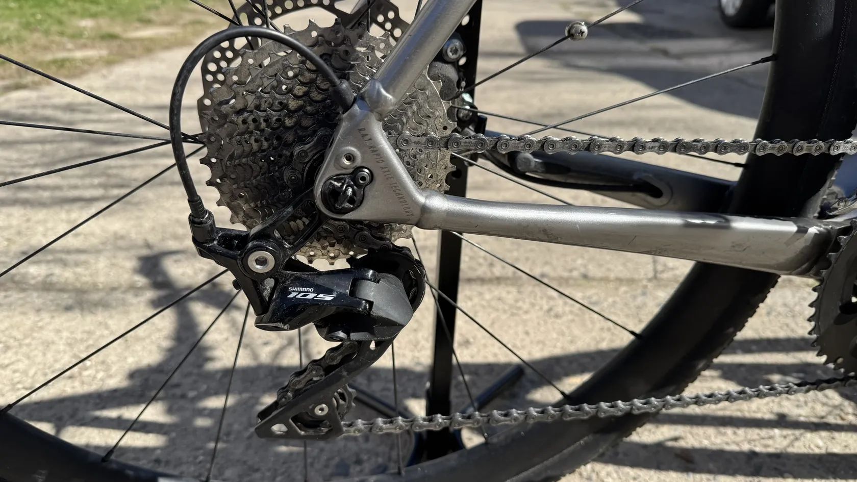 Přehazování: Shimano 105 R7000 (přesmykač i přehazovačka, kazeta, řetěz) – spolehlivá střední až vyšší třída, sportovní úroveň