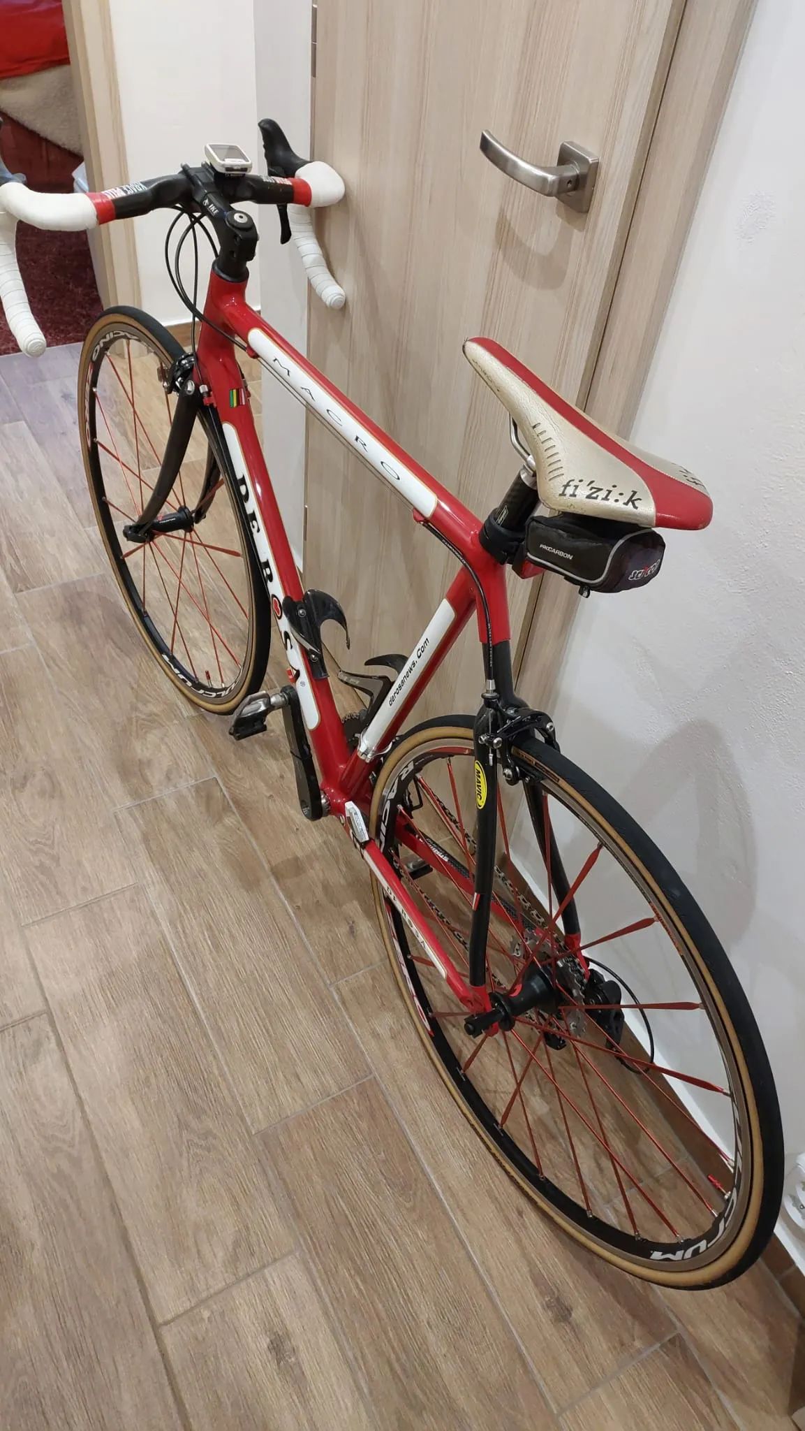 Prodám silniční kolo De Rosa Macro ve výborném technickém stavu. Velikost 58 (180cm až 185cm) Sada Campagnolo Chorus 12 pastorků 11 až 34 minimálně jetá. Kliky 50 až 34 (172,5) Kola Fulcrum Racing I. Rám - hliník, karbon Vidlice - karbon Přesmykač - Campagnolo Chorus