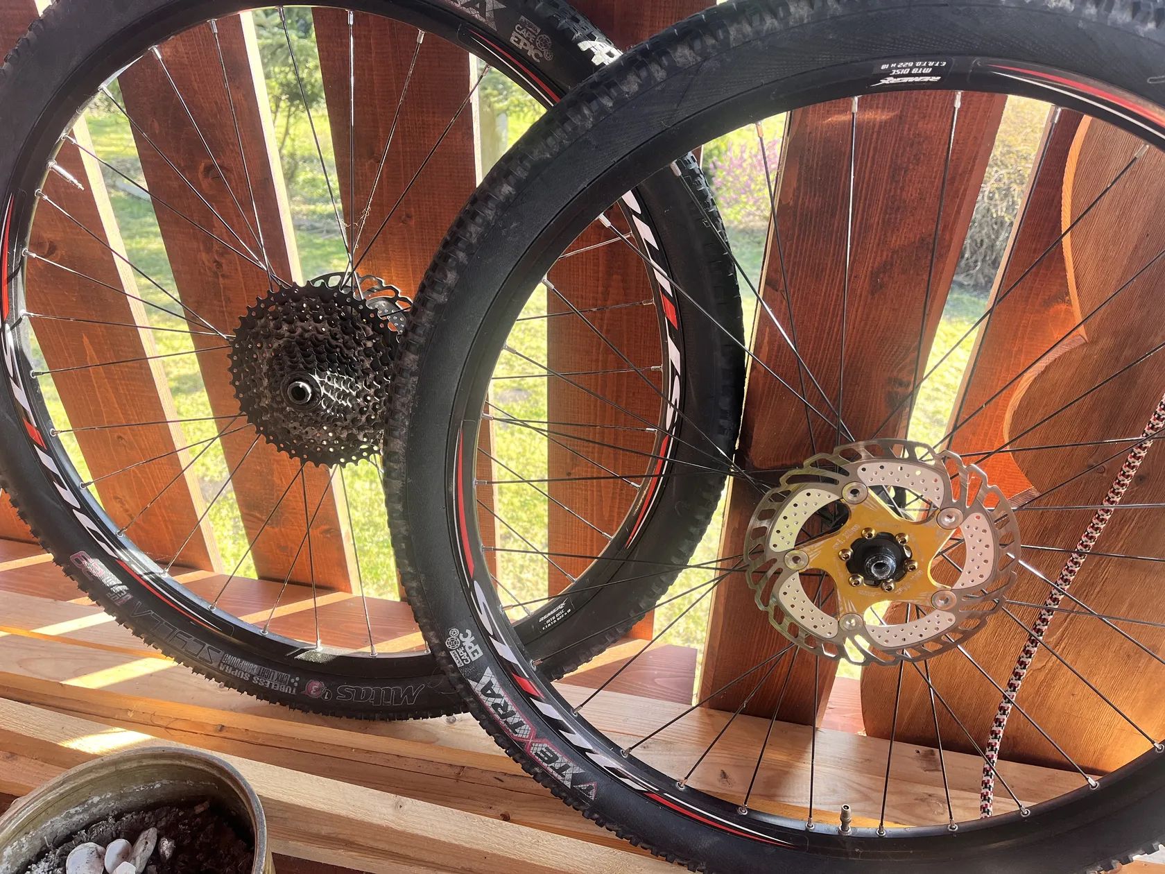 Prodám zapletená kola remerx sting 29, včetně kotoučů 180/160, kazeta 11s HG, pláště. Zůstaly mi z přestavby.