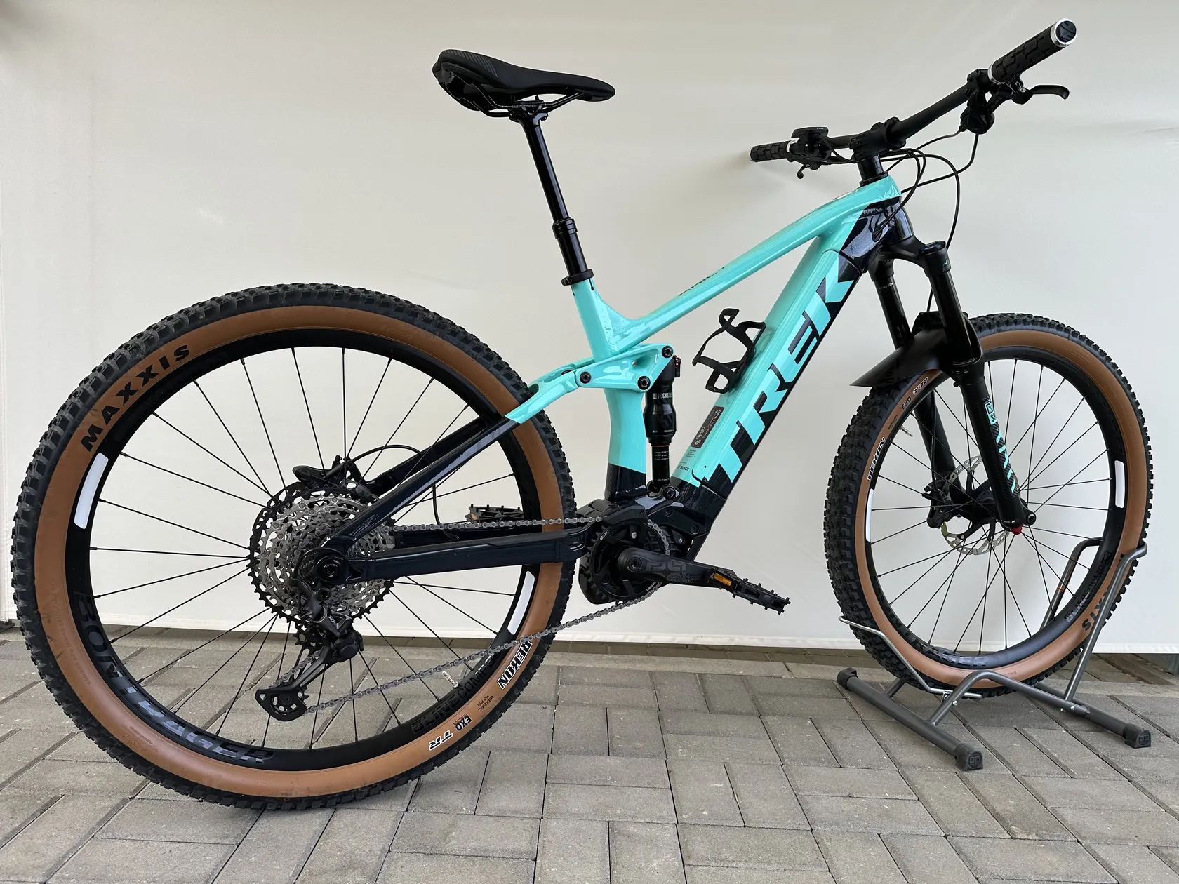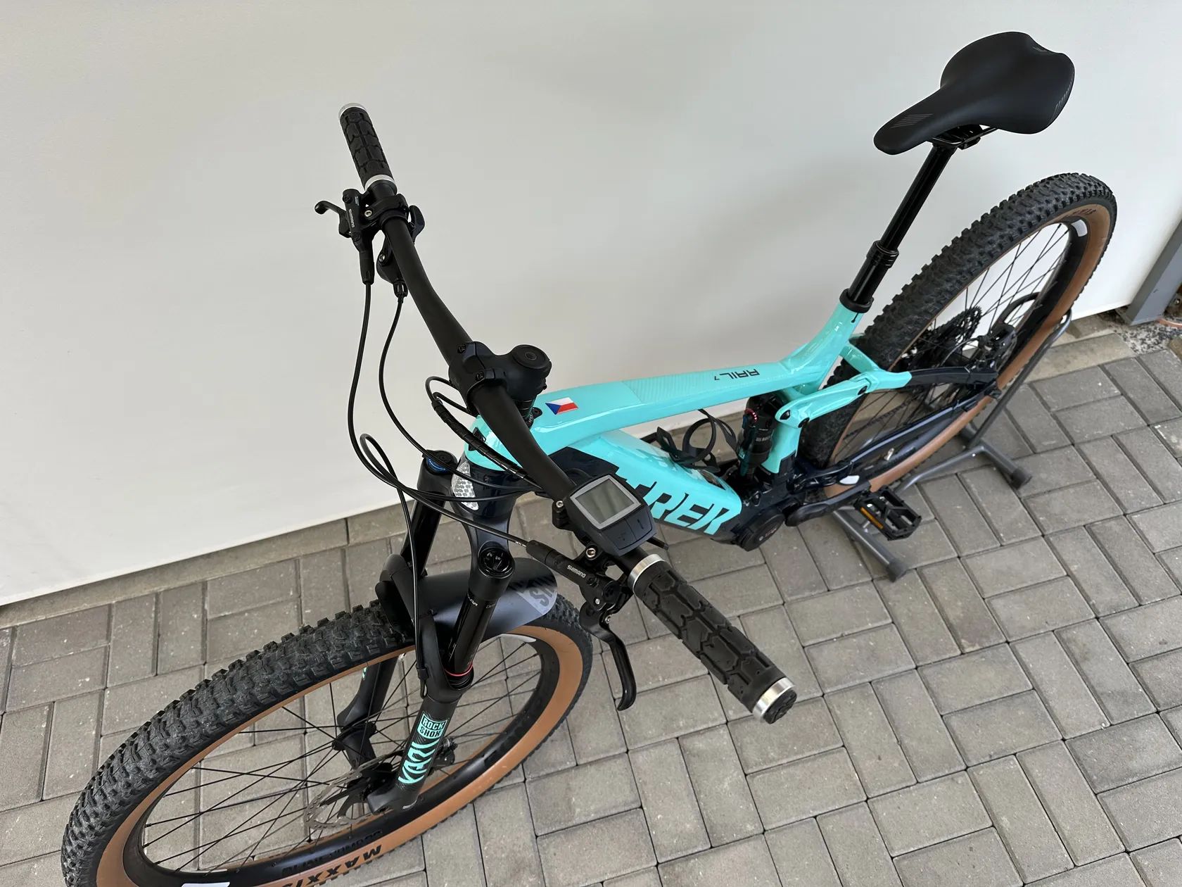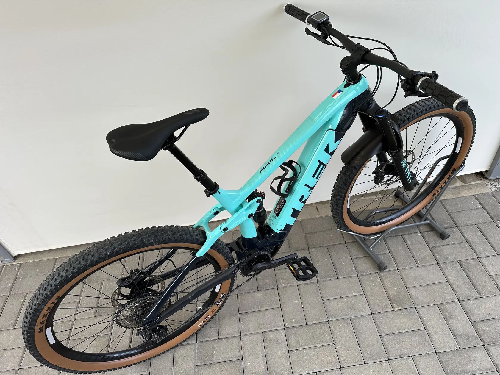 - Kola Bontrager Line Comp 30 + pláště Maxxis Rekon 29×2,6" TR – široký, stabilní trailový set.