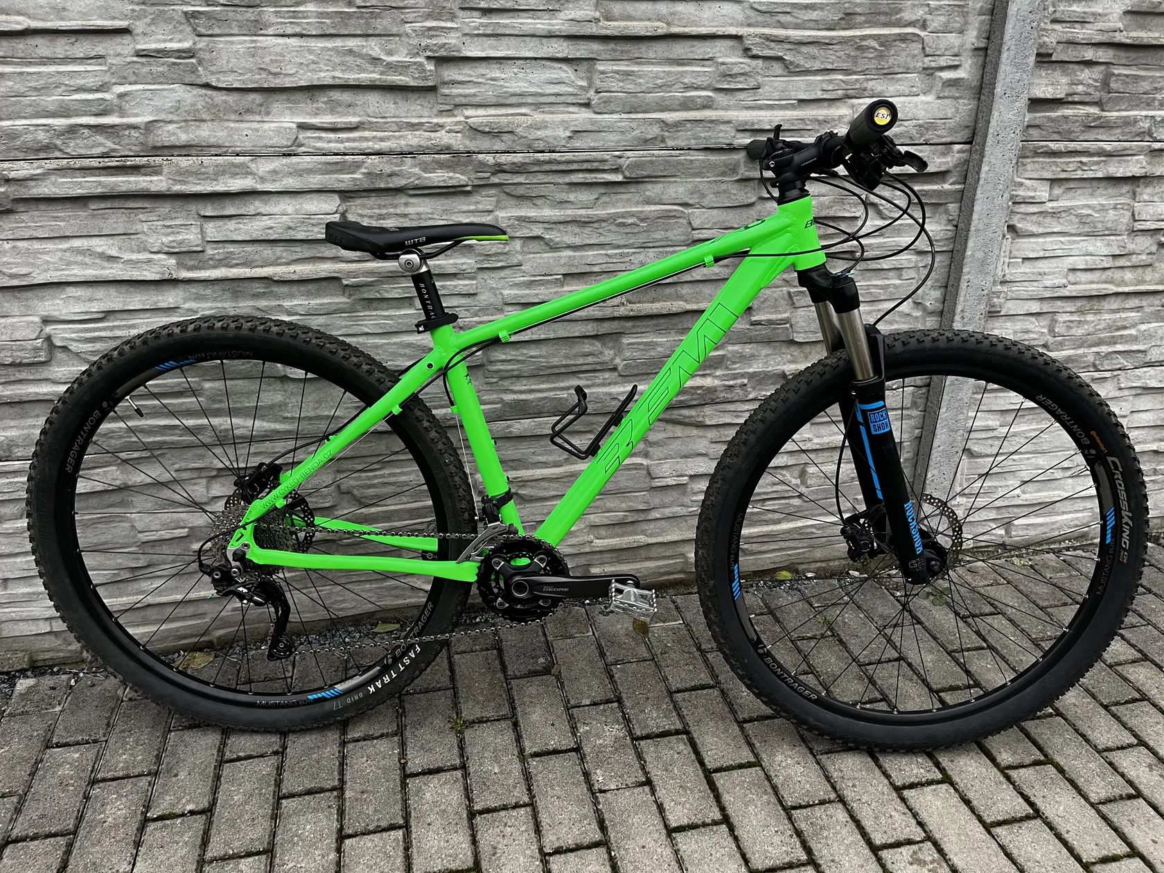 Mtb postavené na kvalitních komponentech Bontrager a Shimano z Treka Superfly Rám je úplně nový Alu z profilovaných trubek. velikost S (vhodné cca pro cca 155-170cm) takže i jako dětské Kolo je v super stavu, po servisu, nové gripy, pláště, destičky, řetěz, vše ok.