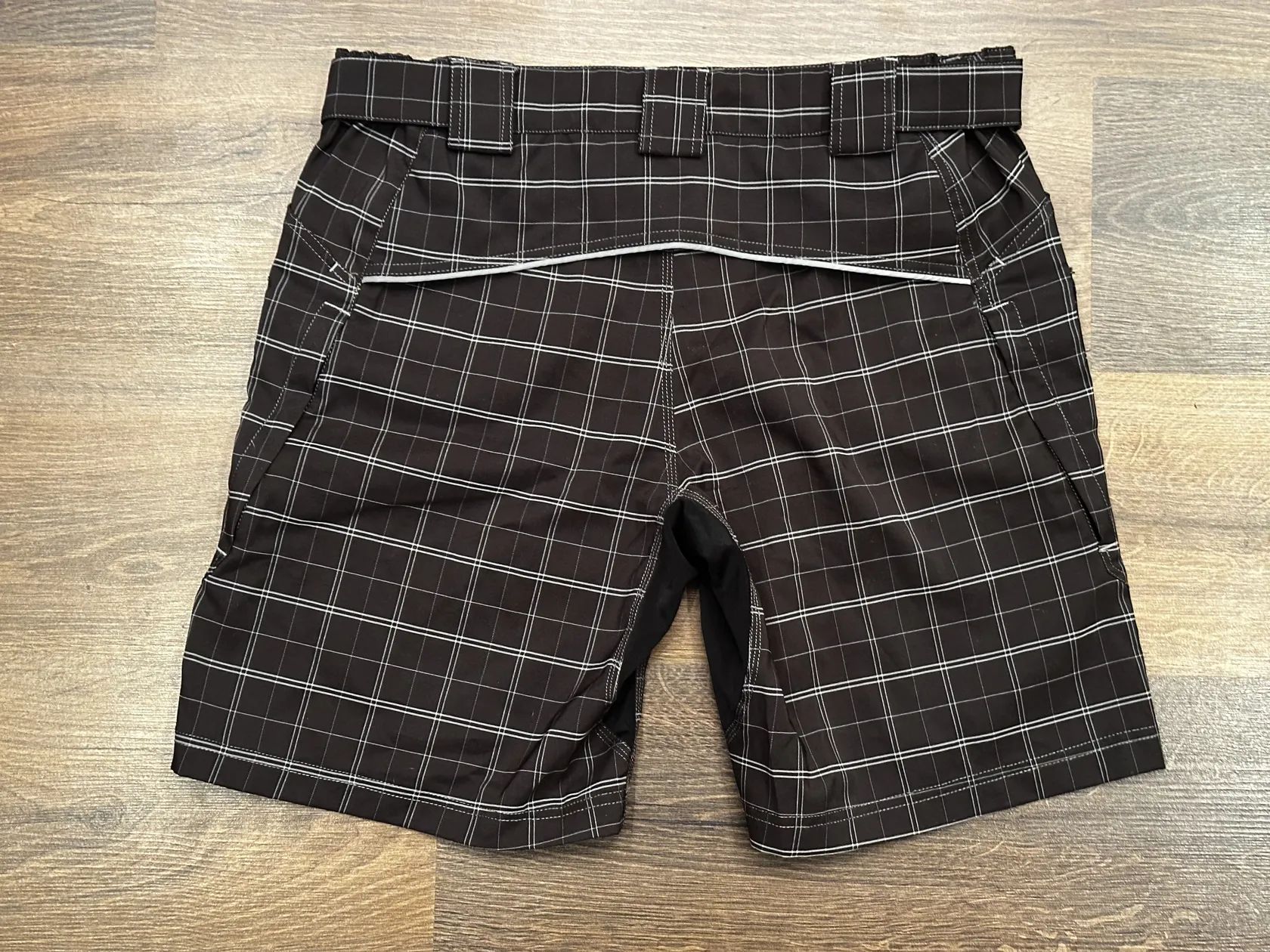 Prodám nové volné kraťasy v kostkovaném designu ve velikosti L. V pase mají cca 44cm a dají se zmenšit i zvětšit. Délka cca 48cm.