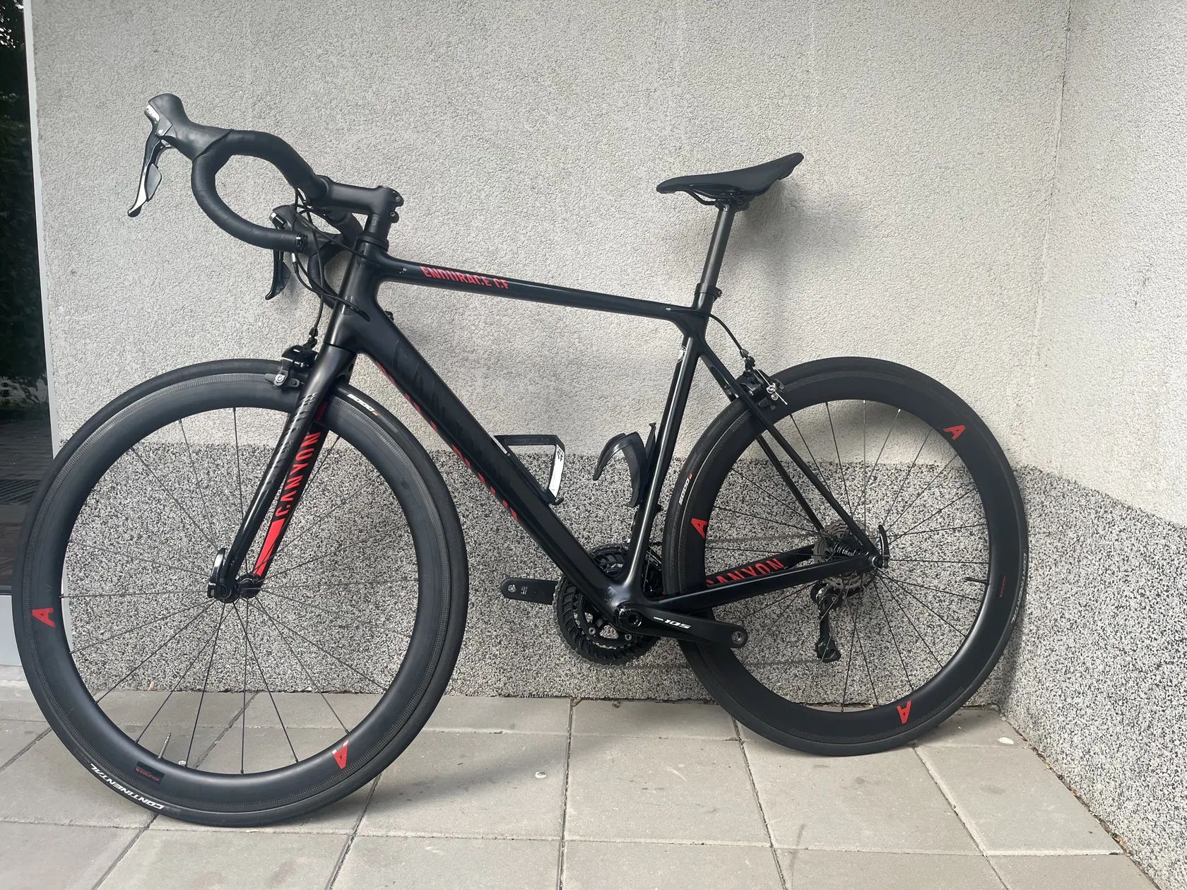 Zdravím, predávam tento cesťák značky Canyon Endurace CF7, ide o endurance cestný bicykel, čo zabezpečuje komfort aj na dlhších výjazdoch a zároveň rýchlosť vďaka karbónovým kolesám, takže je to úplne všestranný bicykel. Je osadený na Shimano 105 R5800 2x11 s tým, že predná píla je z novšej rady R7000, kolesá sú karbónové plášťové Equinox-y s hĺbkou ráfika 50mm, píla je 50x34 a kazeta 11-32 takže žiaden kopec by nemal byť problém, čomu napomáha aj fakt že váži iba okolo 7,2 kg. K videniu je v Brne, preferujem osobný odber, keď tak ho viem v okolí Brna priviezť. Pre viac info mi kľudne volajte alebo píšte SMS. Pri rýchlom a normálnom jednaní nie je problém sa dohodnúť na cene.