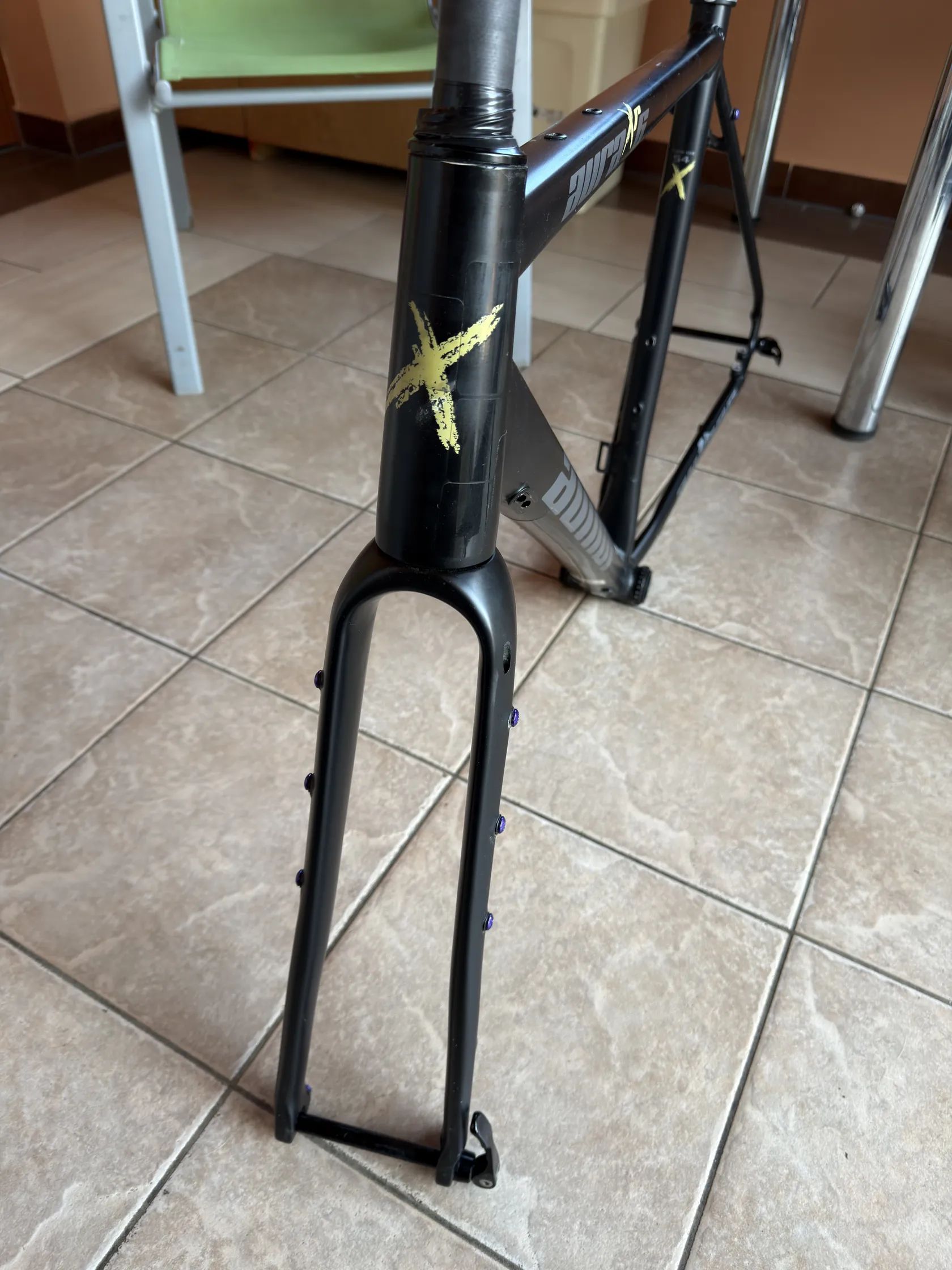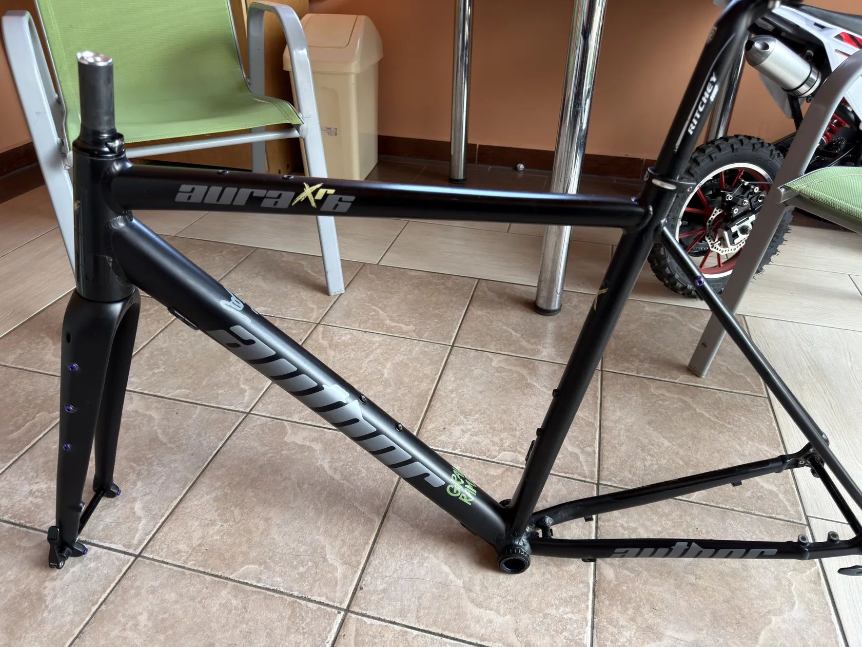 Prodám Gravel Rámovou sadu Author Aura XR6 rok 2023, ve velikosti 54. Rámová sada je včetně pevných Os,hlavoveho a středového složení. Rám je v pěkném stavu minimální kosmetika Můžu přidat sedlo specialized Power 143 Dále mám kliky Sram Rival Dub 175mm převodník 40T Cena za ram 7000kc ,Kliky +1500kc DOHODA JISTÁ