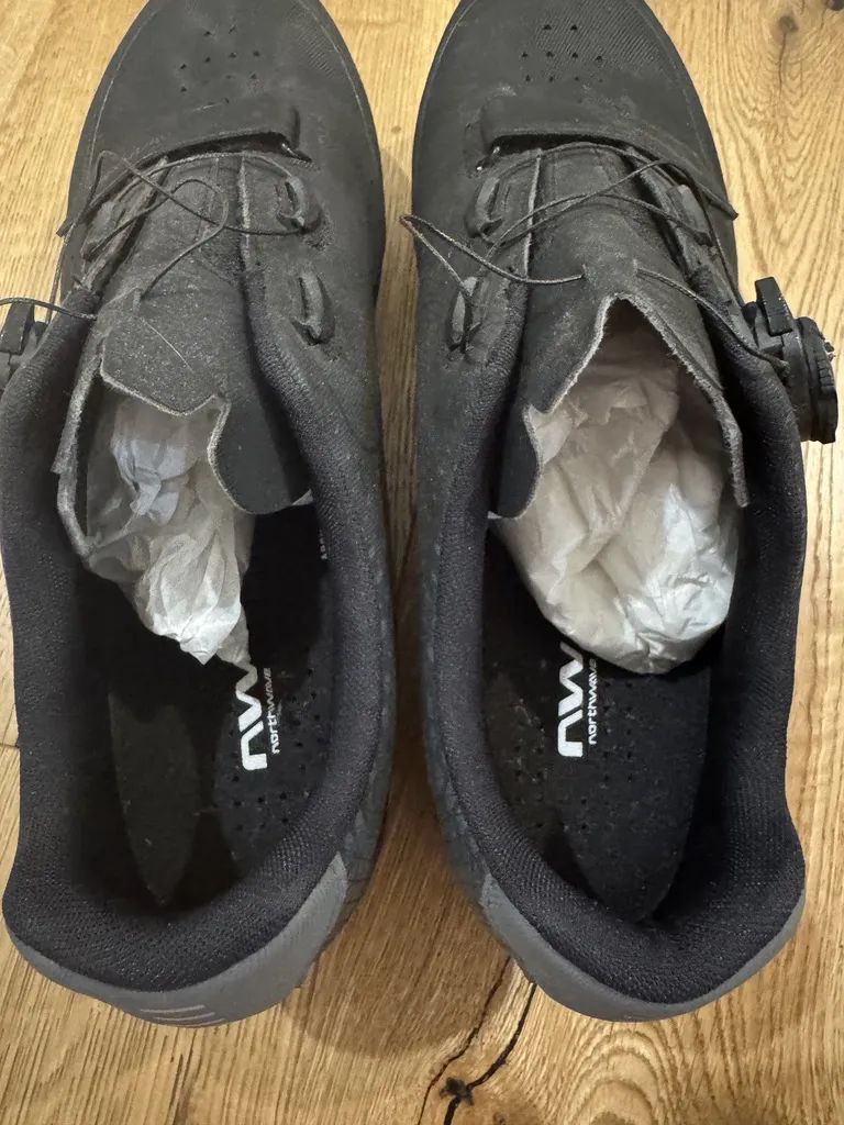 Prodám MTB/Gravel tretry Northwave Origin Plus 2 – vel. 44 (28,4 cm), barva Black/Anthra. Tretry jsou jen 2× použité, takže jsou opravdu ve výborném stavu – minimální známky nošení, nikde nic netlačí ani není rozbité. Vše je plně funkční, suché zipy/utažení drží, podrážka není ošlapaná. Ideální, pokud chceš boty prakticky „jako nové“ za lepší cenu než v obchodě.