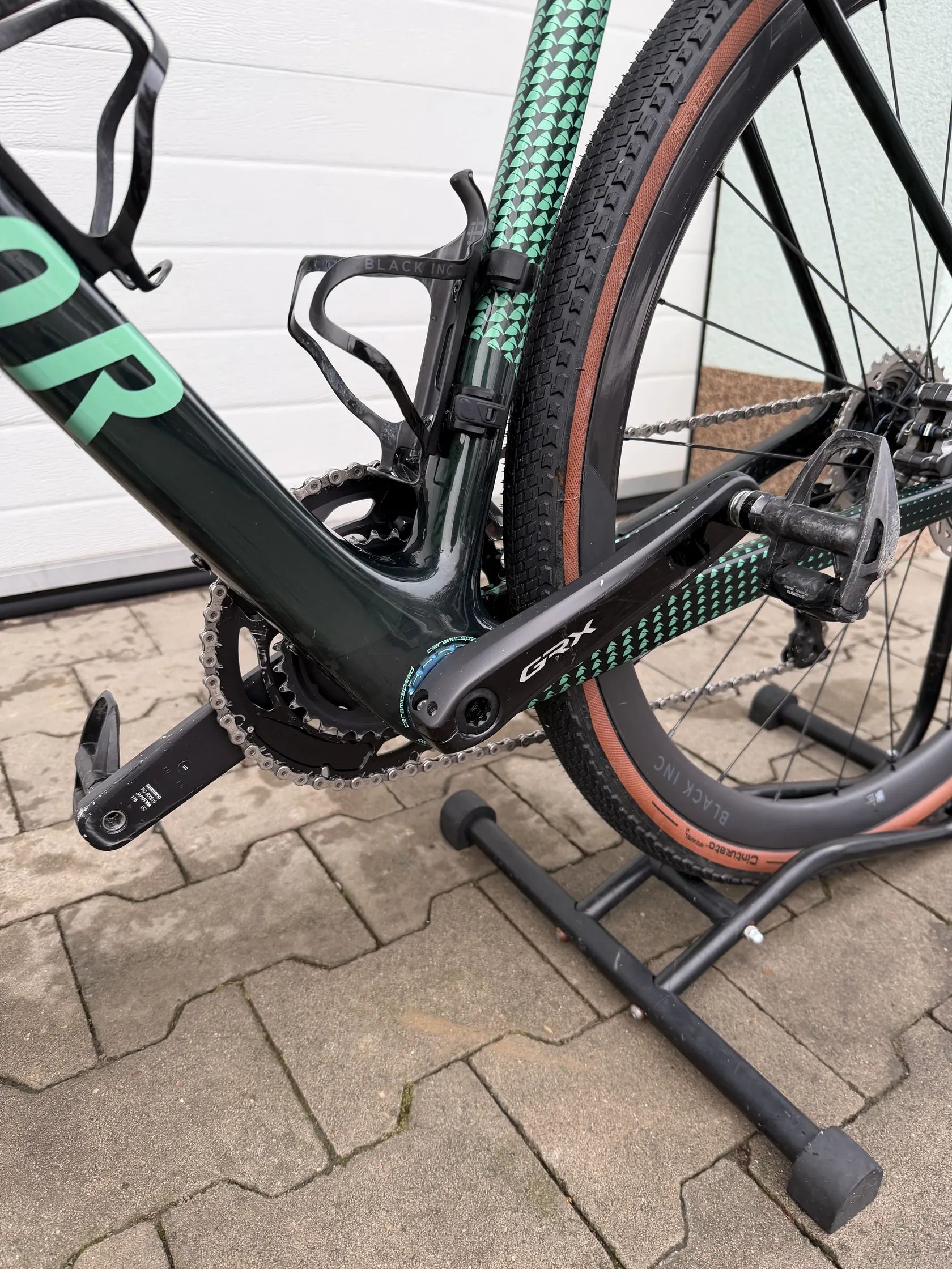 Rám: velikost 54, ideální na 178 - 185, já měřím 184, výška sedadla momentálně 79 cm… Sada : GRX 2 X 11 Kliky: 172,5 Převod : 48-34 x 11-38 Sedlo: Shimano Stealth Řídítka: Black Inc. 400x120 Kola: Black Inc. Carbon - ceramic, pláště Pirelli bezdušové Držák Garmin , košíky Black Inc. Omotávka Gobik Zachovalé