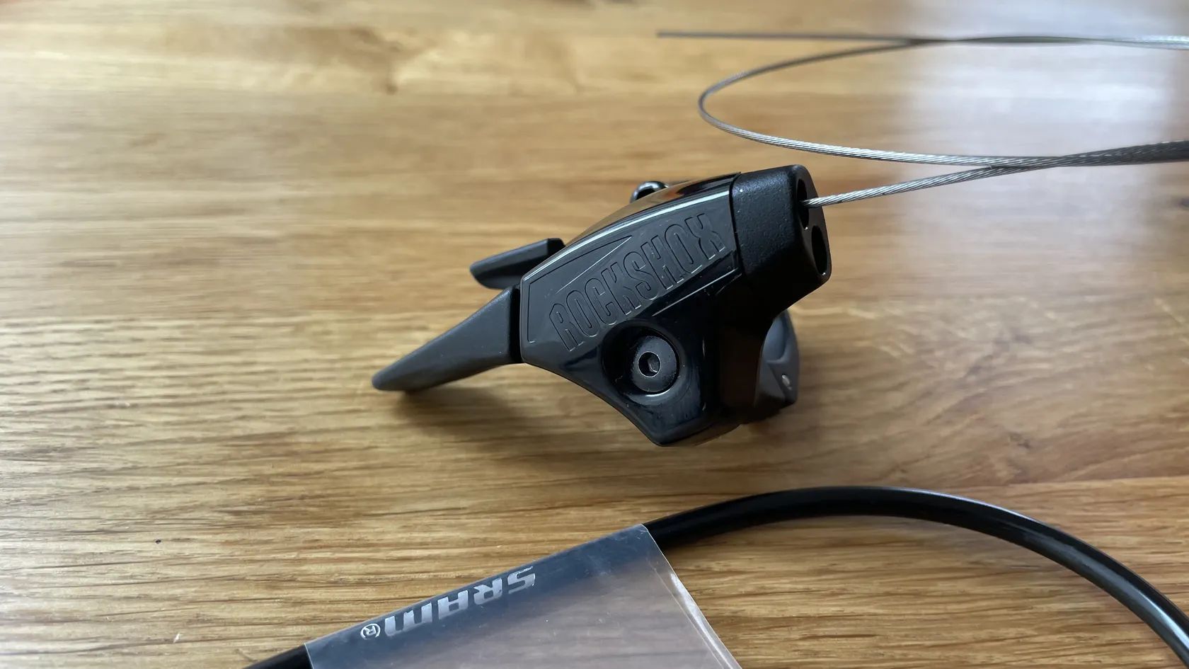 Nová páčka zamykání vidlice a tlumiče Rock Shox OneLoc Sprint. Umístění na řidítkách vpravo nahoře nebo vlevo dole.