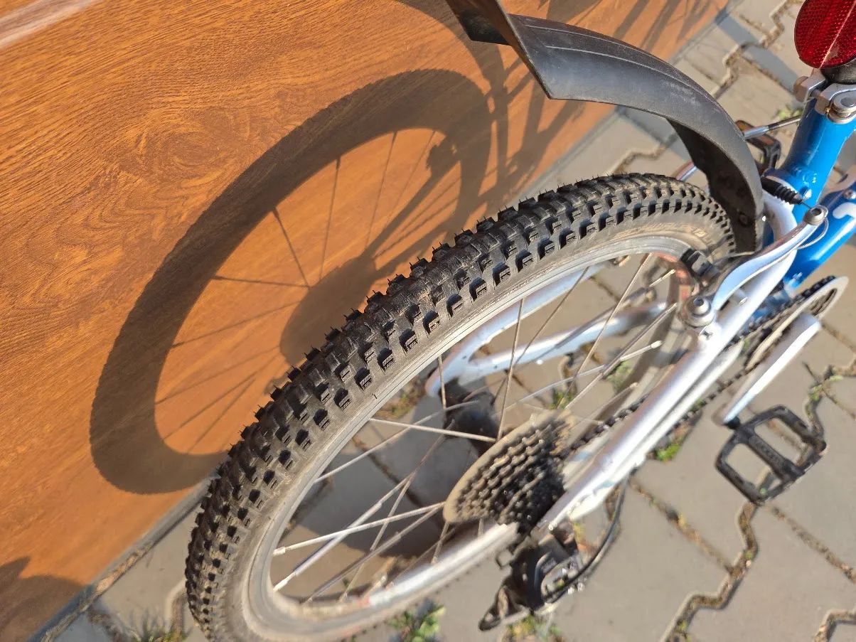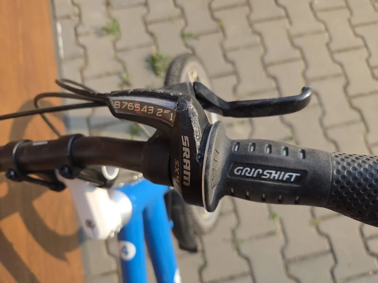 Kolo ježděné aktivně dvě sezóny. Zadní plášť na jednom místě horší, zavařen plast u ukazatele zařazeného stupně (v případě potřeby lze koupit nový kryt), gripshift pro řazení plně funkční.