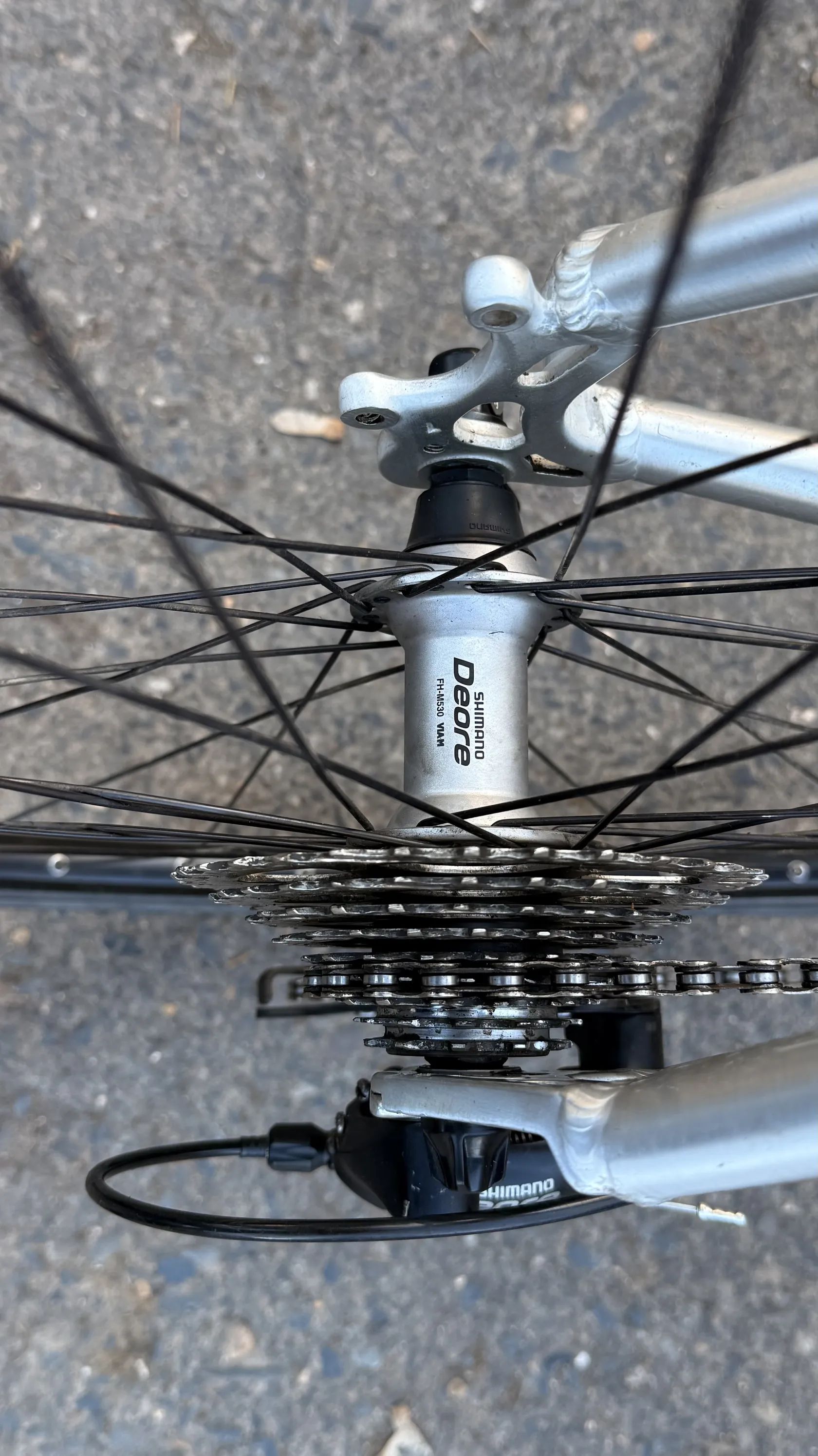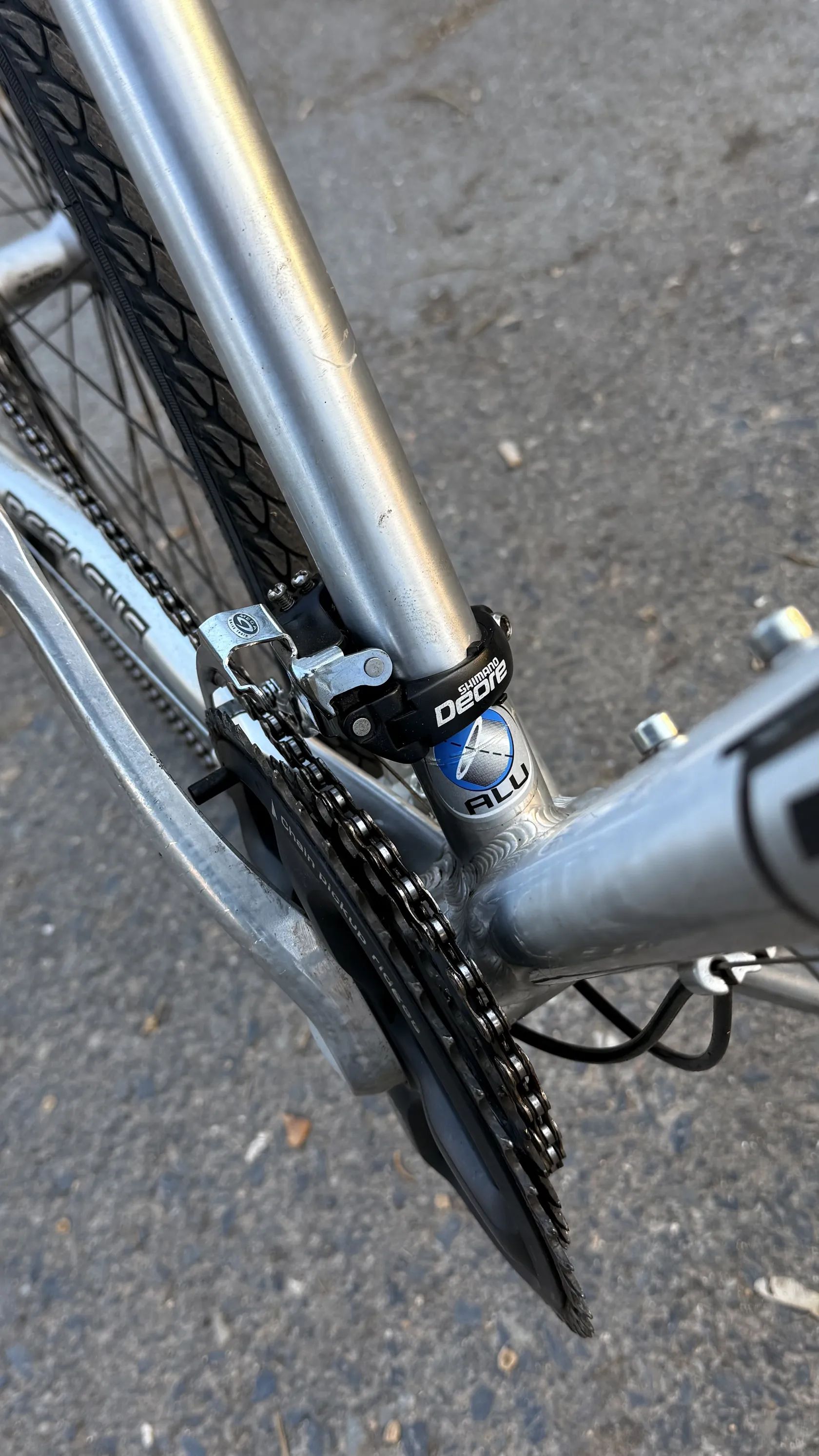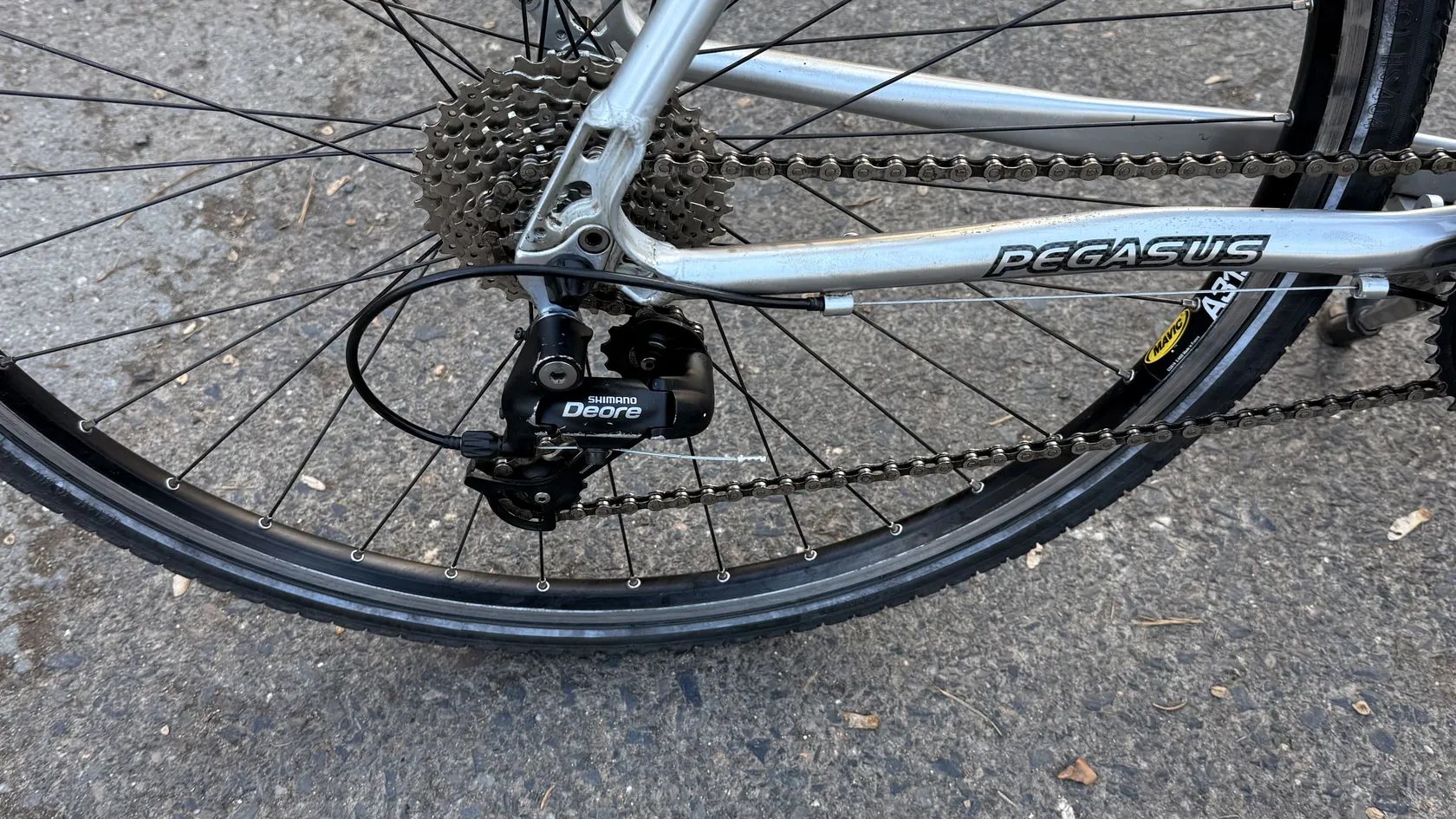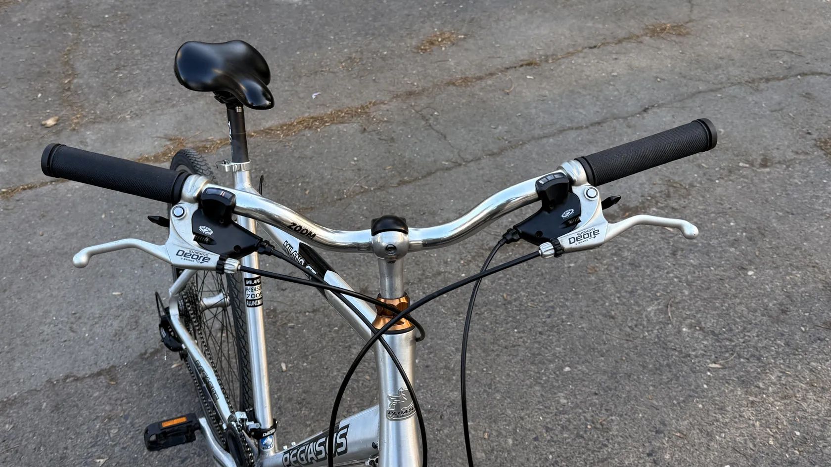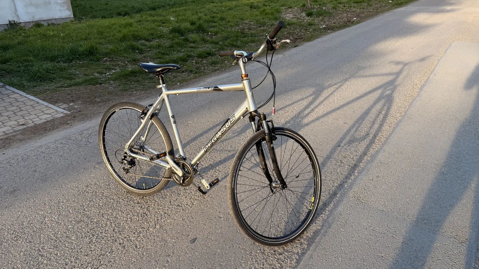 Čtěte popis Prodám Trekingove kolo Německého výrobce Pegasus Milano GT v Střibrno-černém provedení (Rám - Kartáčovaný hliník série 7005) Kolo je po čerstvém servisu,a je v zachovalém stavu . Kolo je komplet rozebrány, vyčistěné , přemazané, a seřízené . Všechno funguje jak má. Komponenty jsou ve hezkém stavu Osazené komponenty Shimano / Deore Kolo je vhodne pro výšku postavy 185 až 200 cm. Kompletace : * Rám - Pegasus Milano GT , velikost 23” , sedlová trubka 58 cm, velikost kol 28 ”, odlehčený hliník série 7005 *Vidlice - Odpružena SR Suntour, ČR 80 zdvih 60 mm . * Sedlo - Selle Rojal Shadow * Sedlovka - Tao 33 * Řiditka - Zoom * Gripy - nové Gumové * Představec - Zoom - s nastavením výšky a úhlu * Řazení / Brzdové Paky - Shimano Deore , ST- M510, 3x9 rychlosti * Brzdy - Shimano , BR- M420, * Přehazovačka - Shimano Deore , RD - M511 * Přesmykač Shimano Deore FD - M510 * Kliky - Shimano * Středové složení - Shimano Deore * Hlavové složení - Integrované * Kazeta - Shimano CS-HG 50 -9 11-32 T * Řetěz - Šrám , PC 370 * Náboj přední - Shimano Deore HB-M530 * Náboj zadní - Shimano Deore FH-M530 * Ráfky - Mavic A319 * Pláště - Schwalbe Marathon Plus Tour /Terra cruiser (32/622)