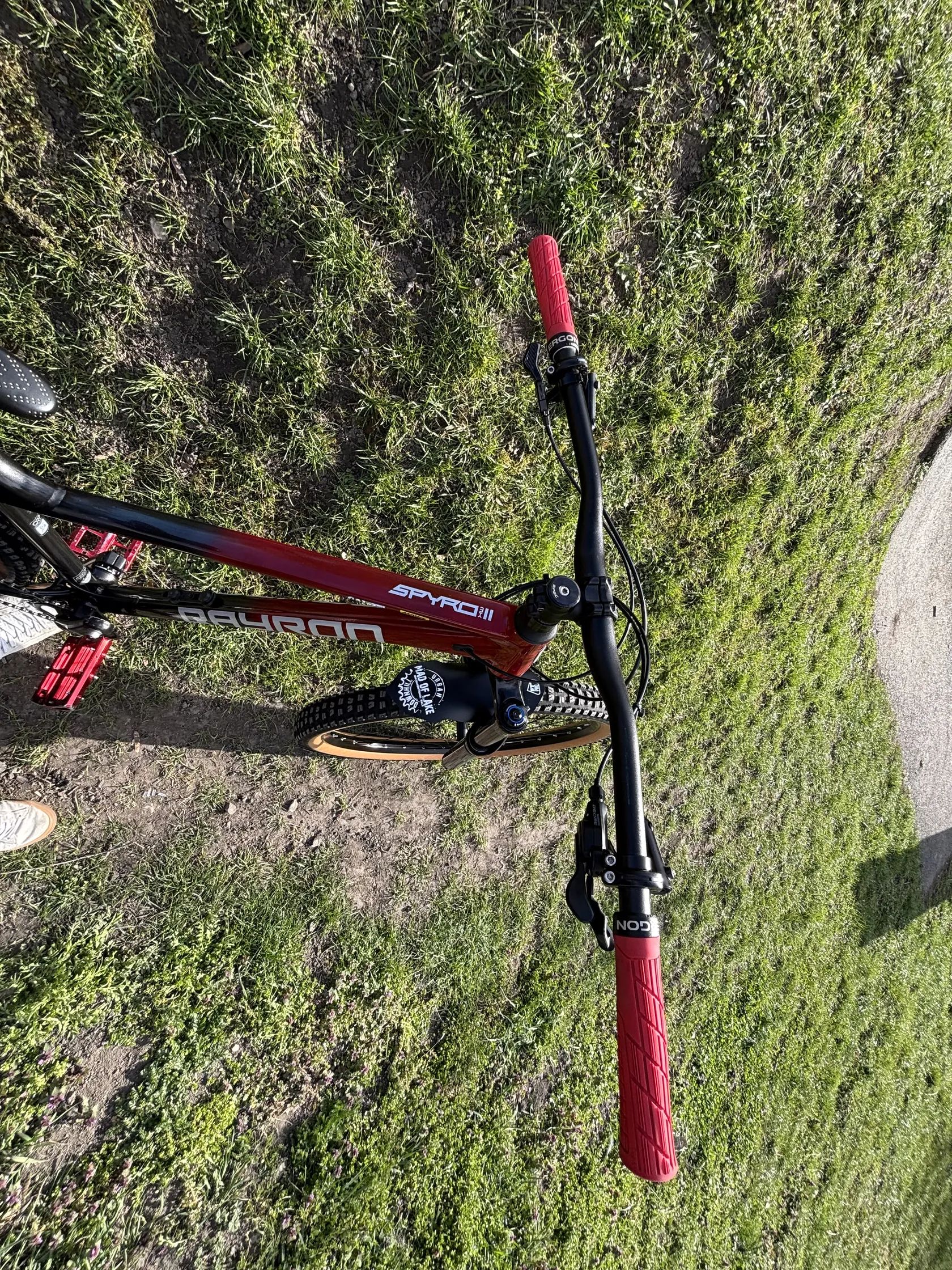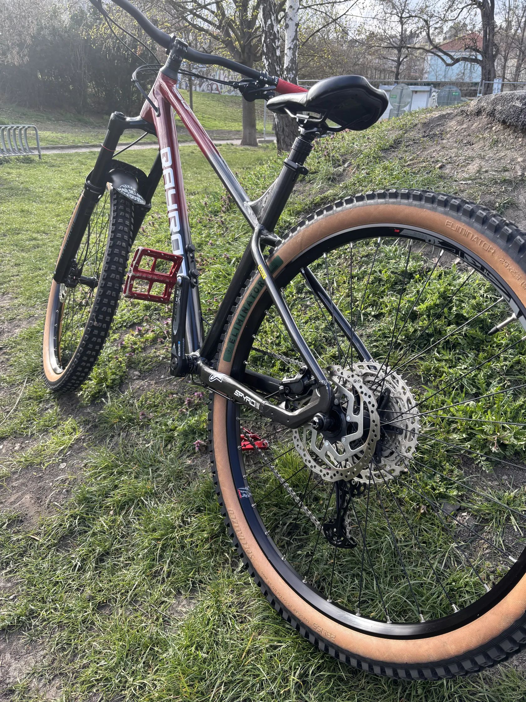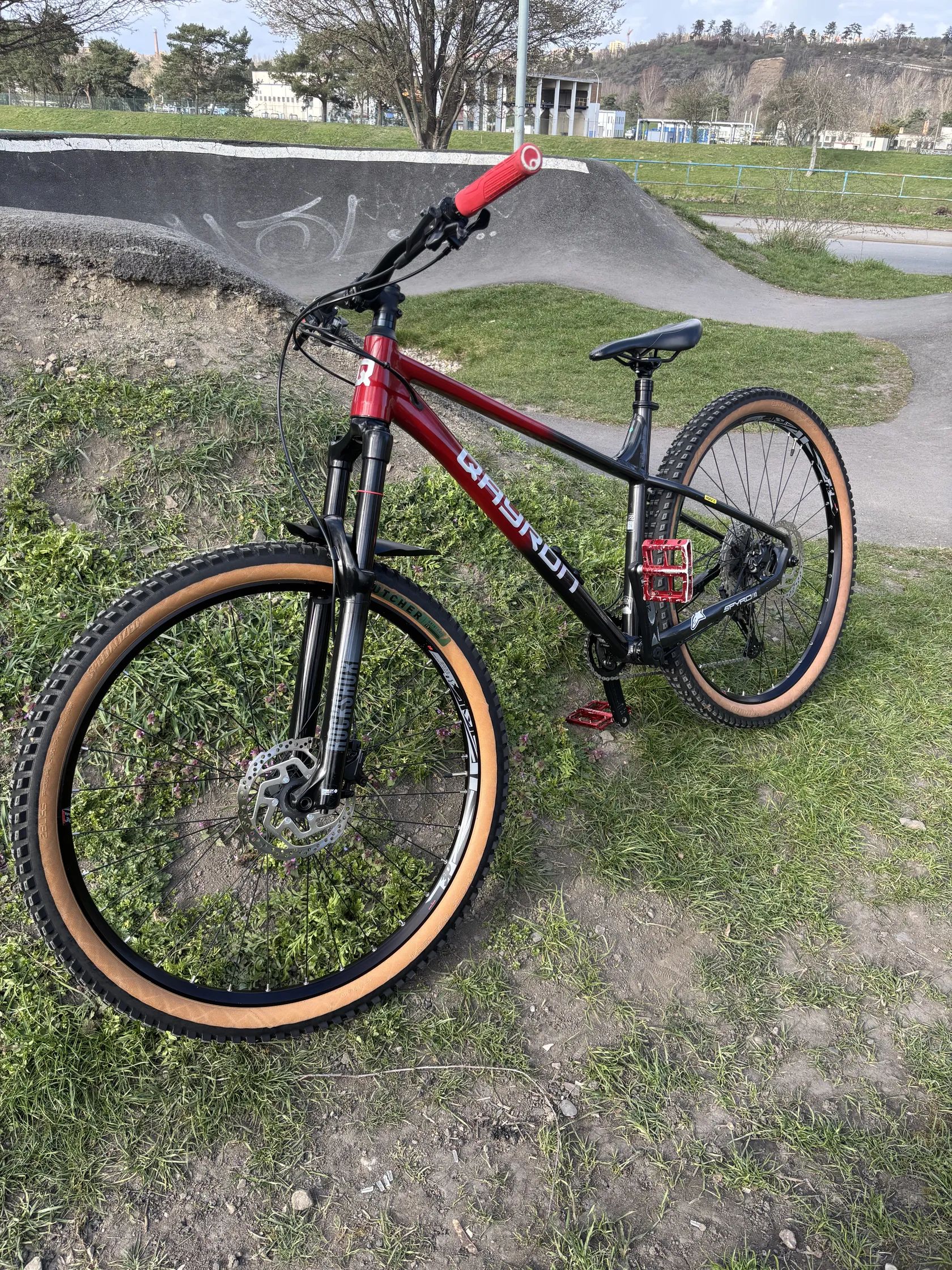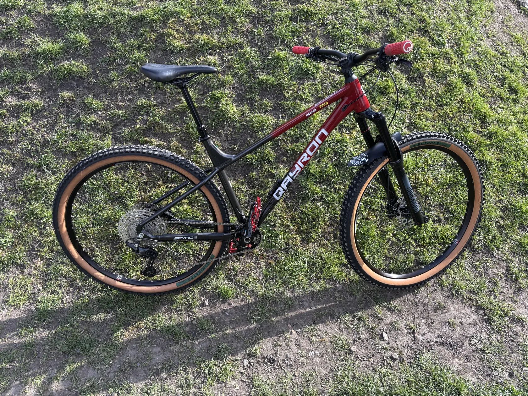 Qayron Spyro MK II. Kolo je připraveno jako vstupní brána do lehkého endura a trailů. Na kole byl udělaný velký servis za 5 tisíc. V rámci servisu byl dělán servis vidlice, teleskopické sedlovky, výměna náplně brzd a odvzdušnění, vycentrování předního a zadního výpletu, vyčištění a seřízení. Doložím fakturou. Oproti původu jsem vyměnil vidlici za RockShock GOLD 35, (původní vidlici Suntour Ridon přidám ke kolu), širší řídítka od Marinu, gripy Ergon.
