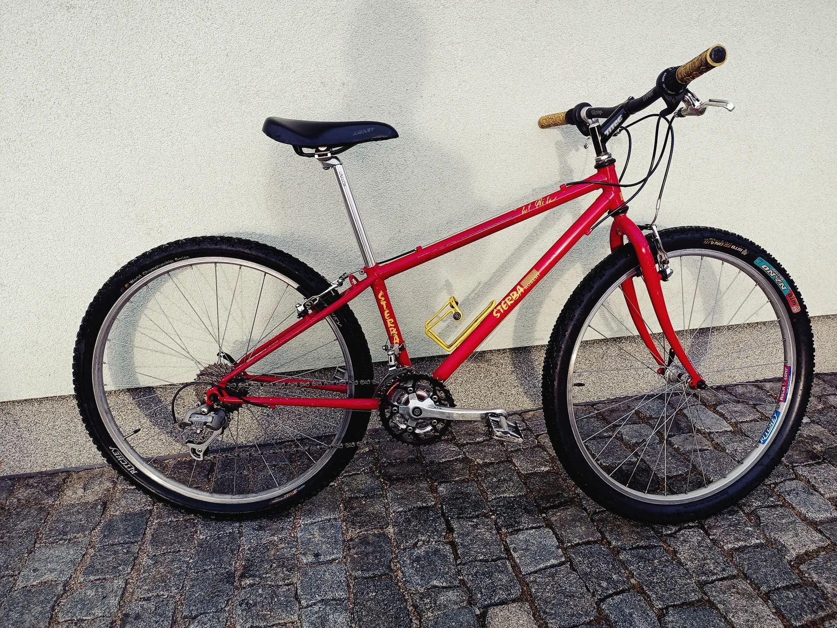Nabízím unikátní MTB Robert Štěrba z počátku 90 let. Klasický CrMo rám pájený do mufen, materiál Columbus, zakázková ruční výroba! Dobové komponenty Shimano STX/STX RC, Grip Shift ESP 7.0. Převody 3x8. Kolo je plně funkční, pojízdné a nese jen známky běžného používání.
