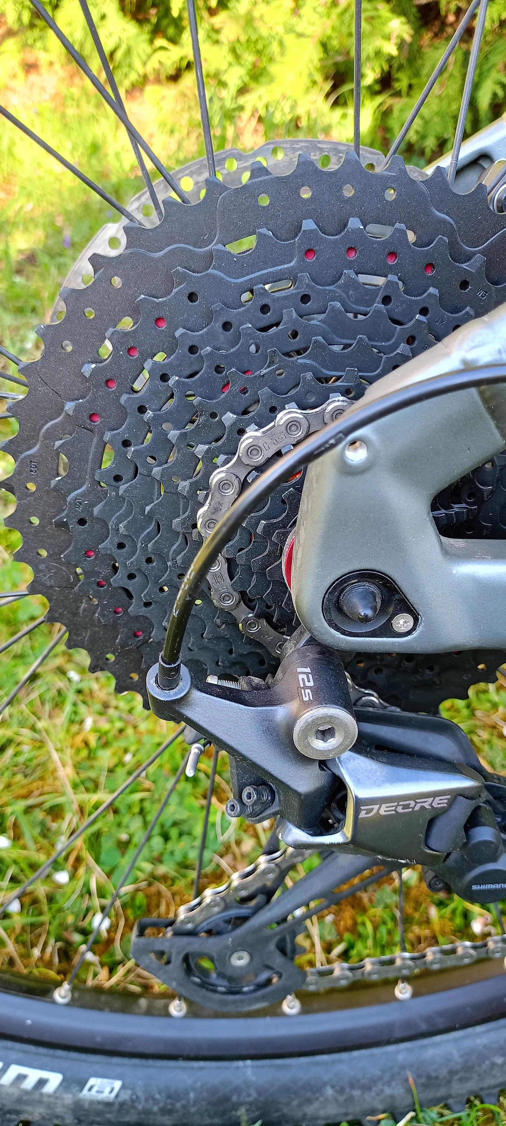 Shimano Deore 1x12 – spolehlivá střední třída, dostatečně široký rozsah převodů pro kopce i rychlou jízdu.