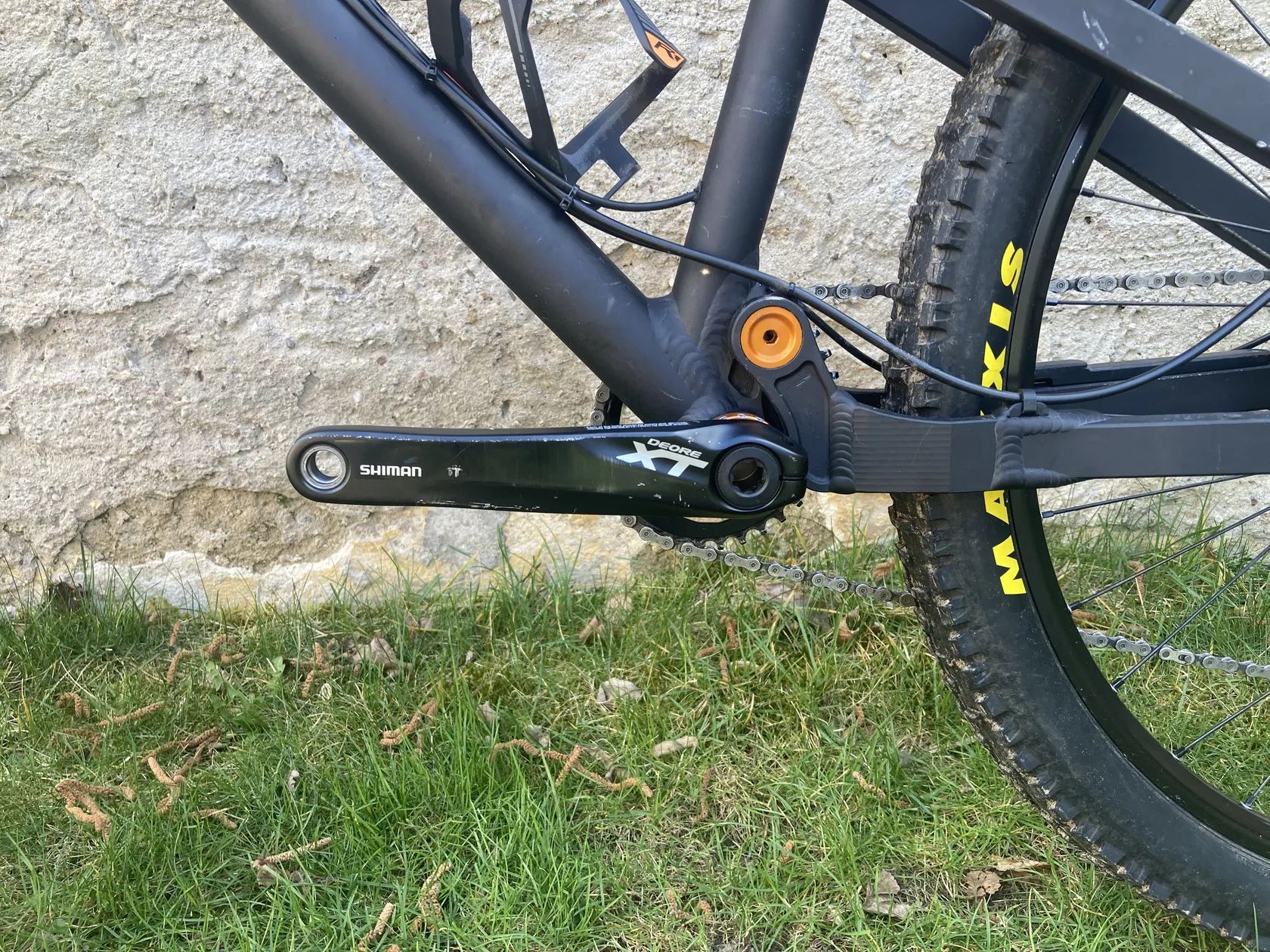 Kolo vyčištěno a promazáno. Rám není nikde prasklý ani promáčklý, jen provozní oděrky od ježdění a převozů. Nyní nastaveno na enduro/DH, viz níže přidám díly na předěláni pro trail/AM.