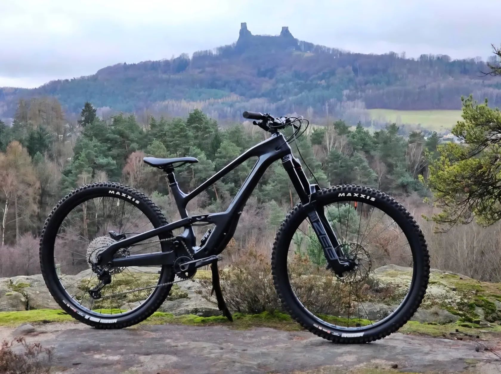 Celkově jde o vyšší třídu / sportovní osazení – celokarbonový rám, moderní enduro konstrukce