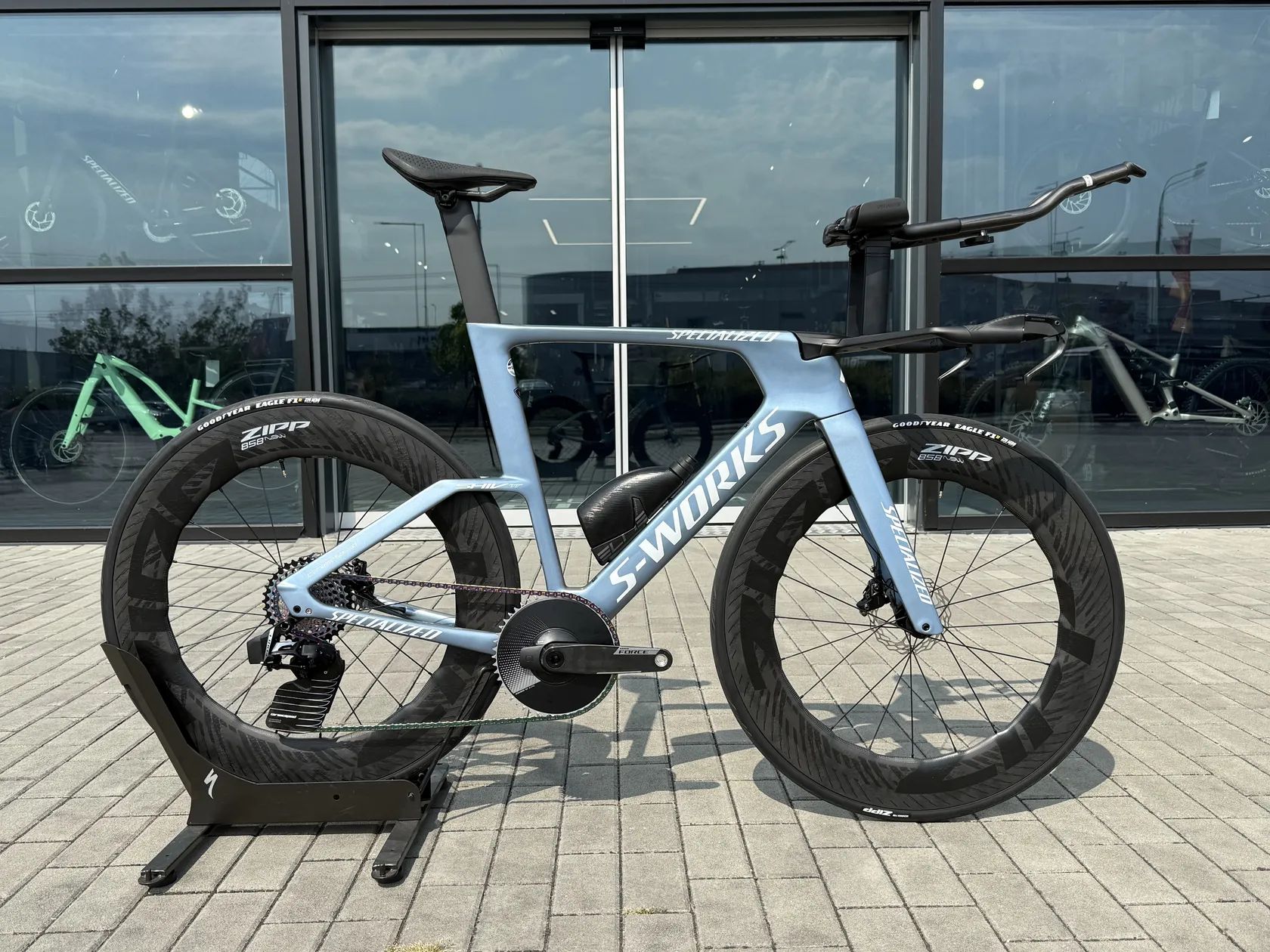 - Rám - S-Works FACT 11r carbon, Win Tunnel Engineered, UCI Legal - Velikost rámu - M - pro výšku postavy 170-188cm - Zapletená kola - Zipp 858 NSW - Pláště - Good Year Z29 Aero - Sedlo - S-Works Power Mirror Evo - Přehazovačka - Sram Force + Ceramicspeed Aero - Převodník - Sram RED Aero 50 zubů (wattmetr) - Kliky - Sram Force 170mm - Brzdy - Sram RED Aero - Středové složení - Ceramicspeed - Aero kladka ceramicspeed