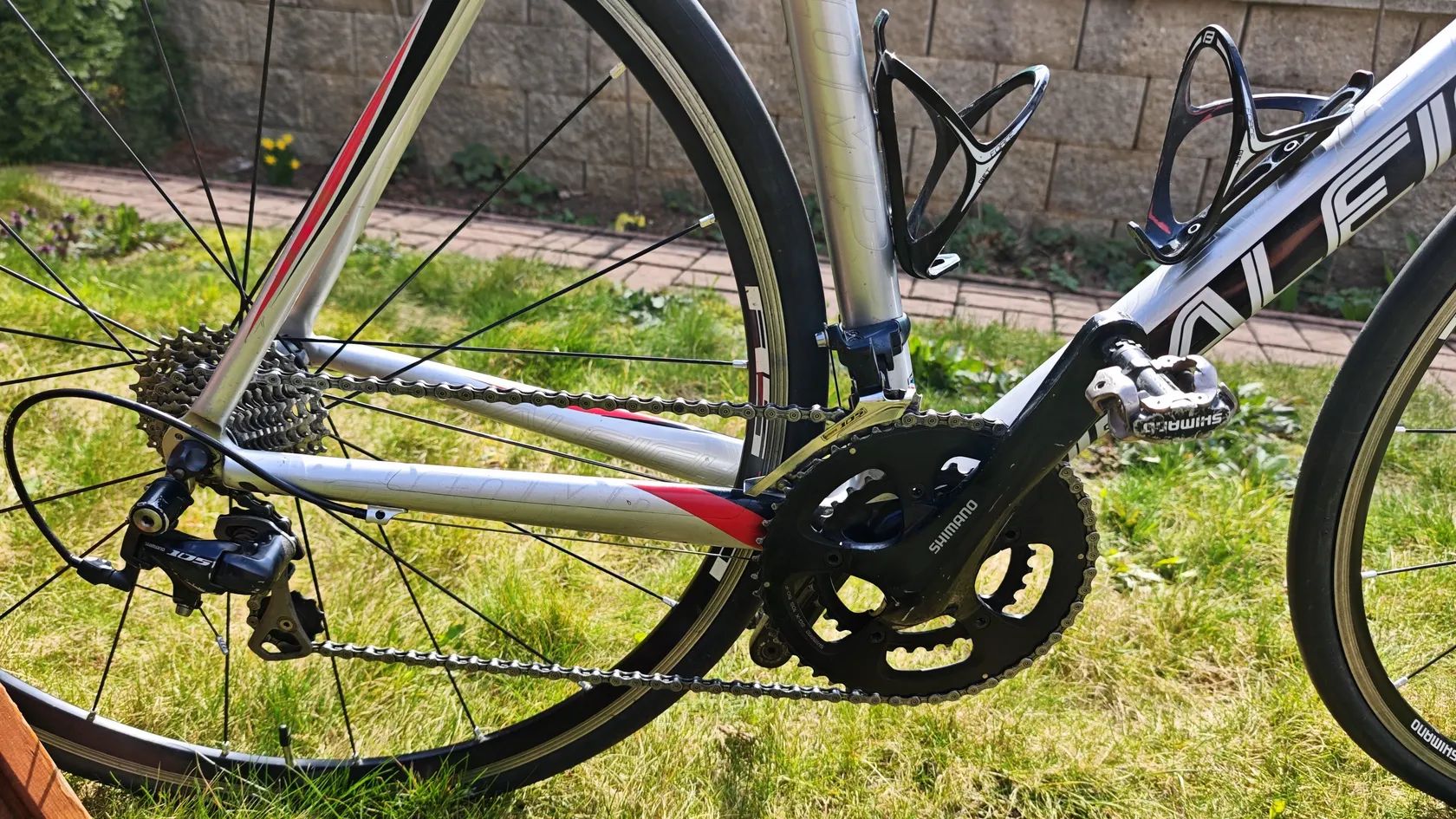 Prodám silniční kolo Raleigh SP Comp s karbonovým rámem a vidlicí, rok výroby cca 2012. Ideální pro seznámení se silniční cyklistikou. Kolo má klasické ráfkové brzdy, zapletená kola Shimano a je osazené silničními komponenty Shimano 105, vše plně funkční. Na řídítkách jsou nasazeny aero nástavce, které lze odjemout, použitelné pro triatlonové závody žáků / dorostu / juniorů. Na rámu a sedle oděrky odpovídající používání, viz. fotografie. Velikost rámu na postavu cca 170cm. Bez pedálů.