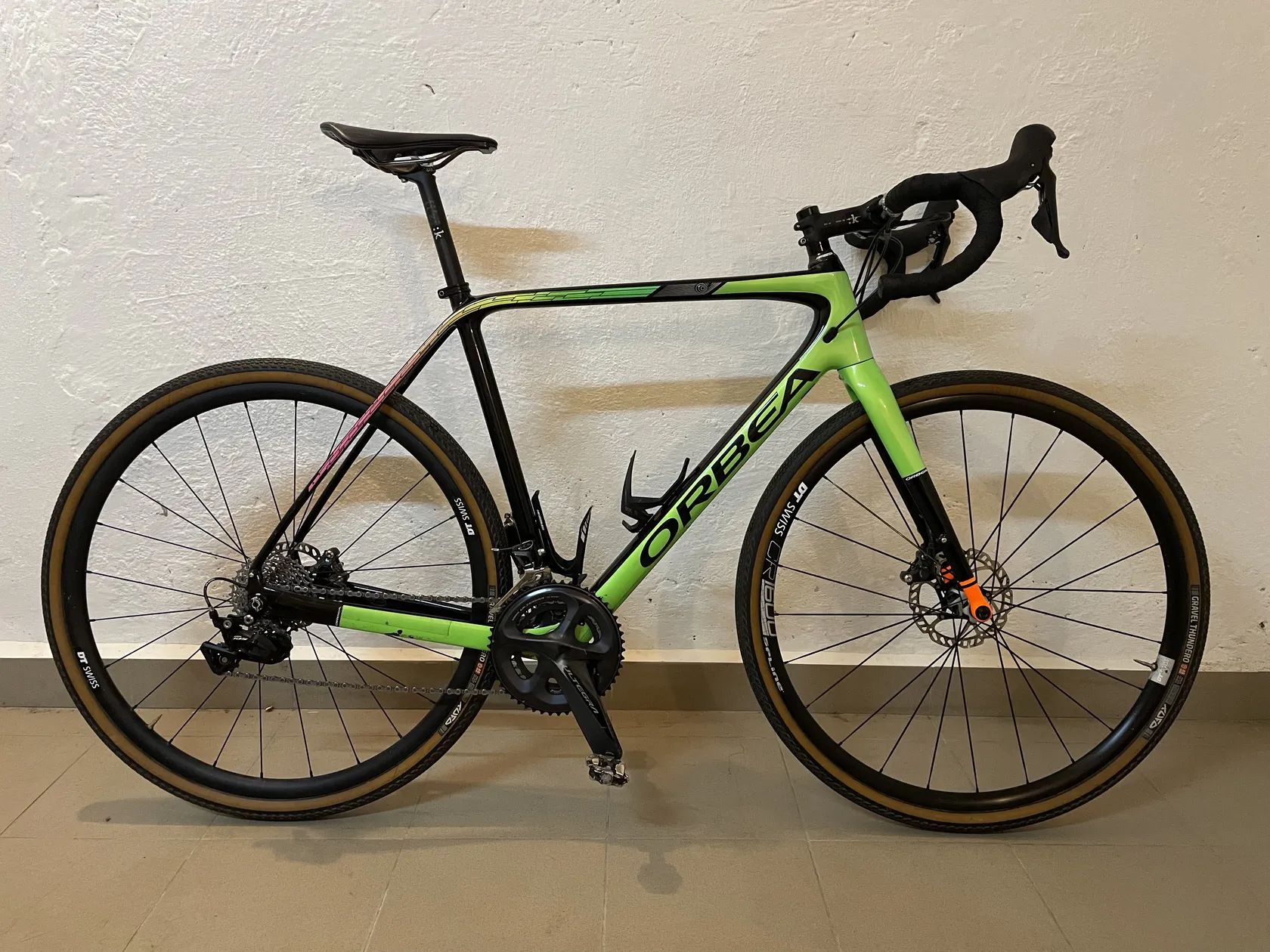 Orbea Terra velikost M, Reach - 385 mm, Stack - 575 mm Ultegra brzdy, páky a kliky, přehazovačka a přesmykač 105 převodníky 50/34, kazeta 11-32 Zánovní díly: ložiska head setu, ložiska v ořechu, omotávka, gumy na pákách, přehazka a smyk, bovdeny a lanka, téměř nový velký převodník (najeto do 200km). AL kola a náboje DT Swiss, pláště Tufo Thundero 40, tubless čerstvě nasazené s CaffeLatex Prodávám vše co je na foto - držák na garmina, dva košíky, jeden karbonový jeden obyč, pedály Look (shimano spd)