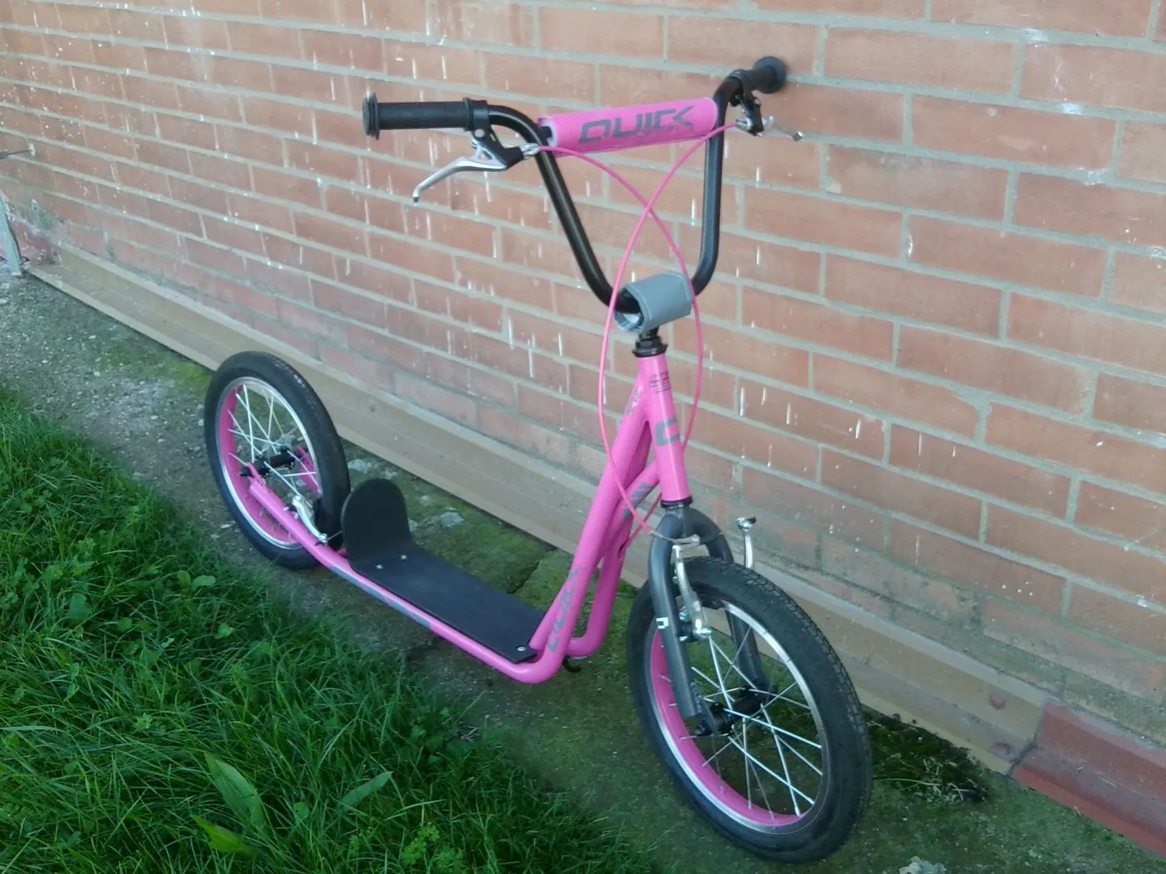 Prodám koloběžku v perfektním stavu, jetou pouze jednu letní sezonu. Koloběžka pro dospívajíci děti a dospělé. Specifikace: - prodloužený dvojtý rám - ráfky Alu - pneu 16x2,125 - dvě-V brzdy- délka nášlapu 32/šířka 12 cm. Výškově nastavitelná řidítka, šířka řidítek 57cm - výška řidítek 95-110 cm. Délka 145cm.