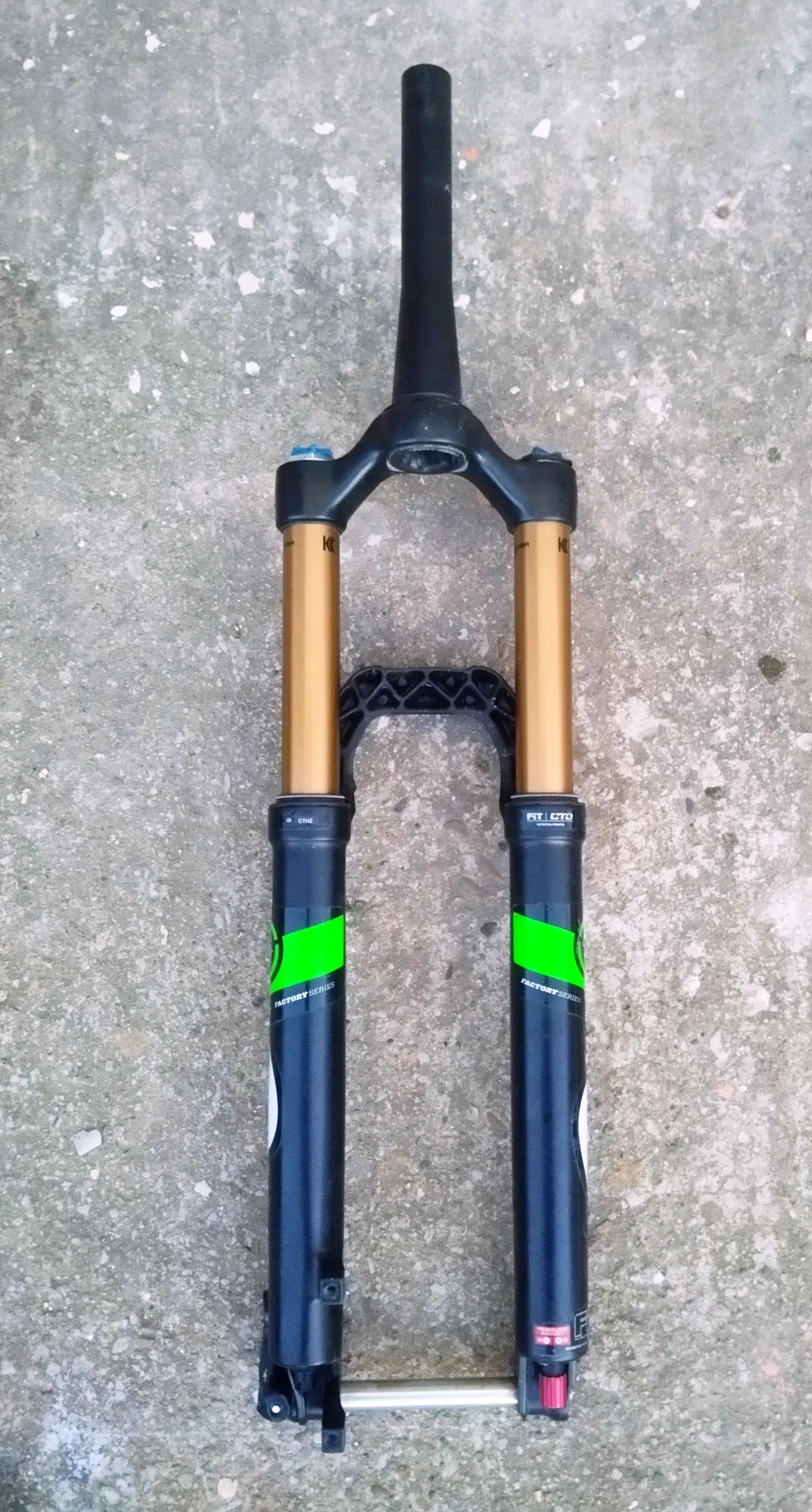 Fox F32, nejvyšší verze vidlice Factory, s osou QR 15 s úpravou Kashima o zdvihu 140 mm. Nastavení tlaku vzduchu, odskoku, 3 úrovně komprese CTD až po lockout, nastavení rychlé komprese, patróna FIT. Lehká a spolehlivá vidlice, téměř nepoužitá, sloupek tapered 20 cm, pre kotoučové brzdy, excelentní hmotnost 1590 g, spolu s originál osí FOX 15x100 mm. Původná cena 19500 kč, teď 5900 kč. Slavkov u Uh. Brodu nebo zašlu i zásilkovnou.