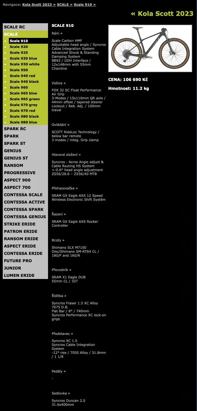 Prodám SCOTT Scale 910 (model 2023) – špičkové karbonové XC kolo, které kombinuje nízkou hmotnost, skvělou ovladatelnost a výkon. Kolo je ve výborném stavu, bez škrábanců a nutnosti investic.