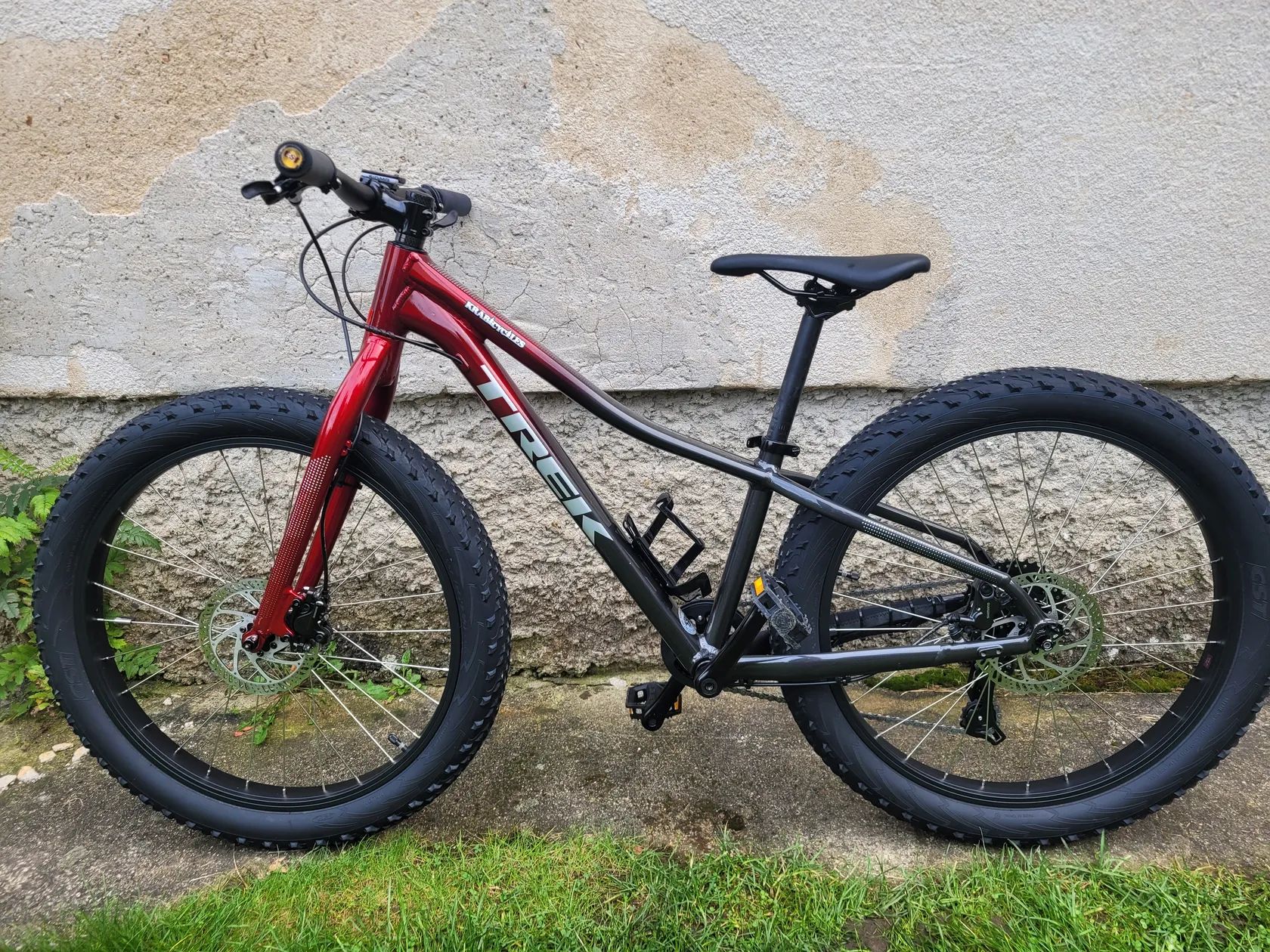 Trek Roscoe 24". Dva roky používané, najeto pouze 100km. Oproti katalogu vyměněné brzdy za hydraulické brzdy Shimano BR-MT520, vzadu čtyř píst. Pláště 24x2.8" ideální na traily a bike parky. Původní cena na mechanických brzdách 16.000.-