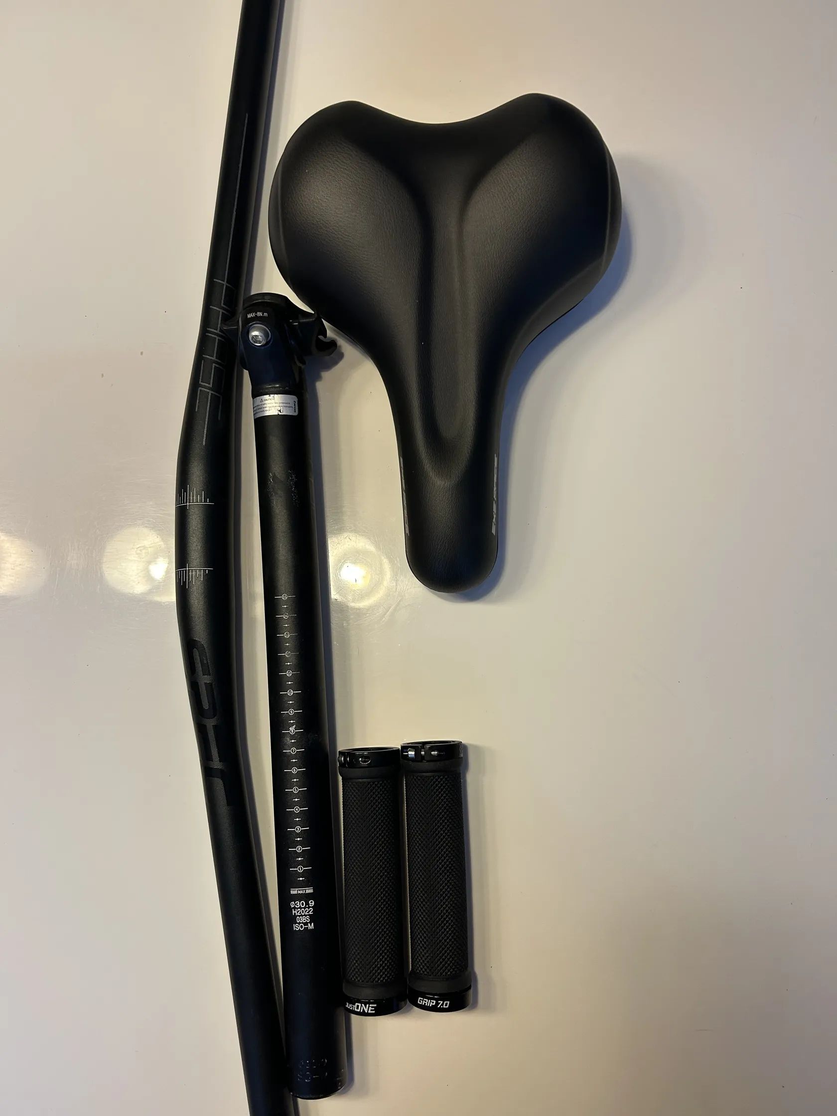 Prodám nové komponenty na horské kolo, řídítka(760mm) a sedlovka PHASE, sedlo EXE RACE, gripy ONE. Vzhledem k nízké ceně pouze dohromady