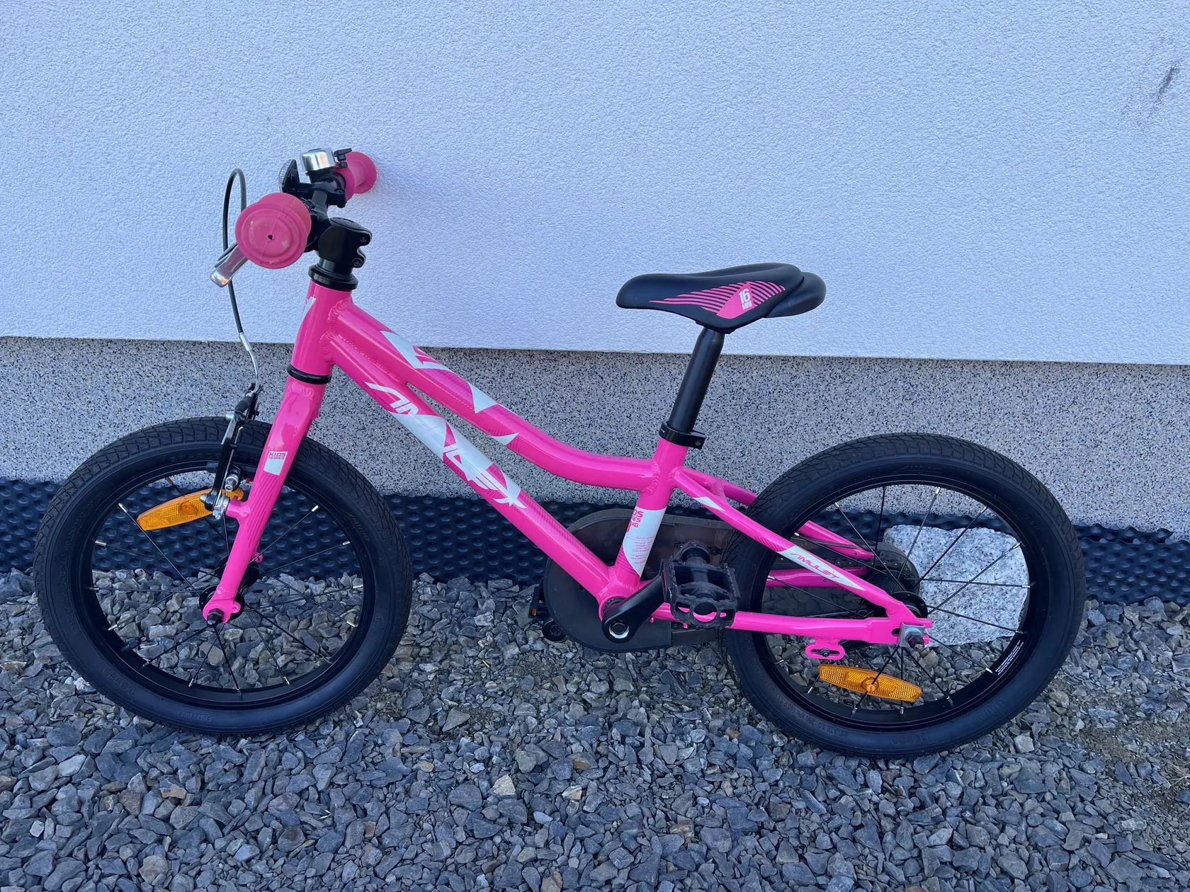 Dětské kolo české značky Amulet, velikost 16, typ Mini Lite. Hliníkový rám i vidlice, váha 6,2 kg, sundavací přídavná kolečka. Snížená sportovní geometrie pro lehčí nasedání, dvě nezávislé brzdy, zadní torpédo. Na zadní straně sedla je madlo pro lehčí držení rodiči při prvních jízdách. Velmi dobrý stav, drobné oděrky na gripech a sedle (viz fotky).