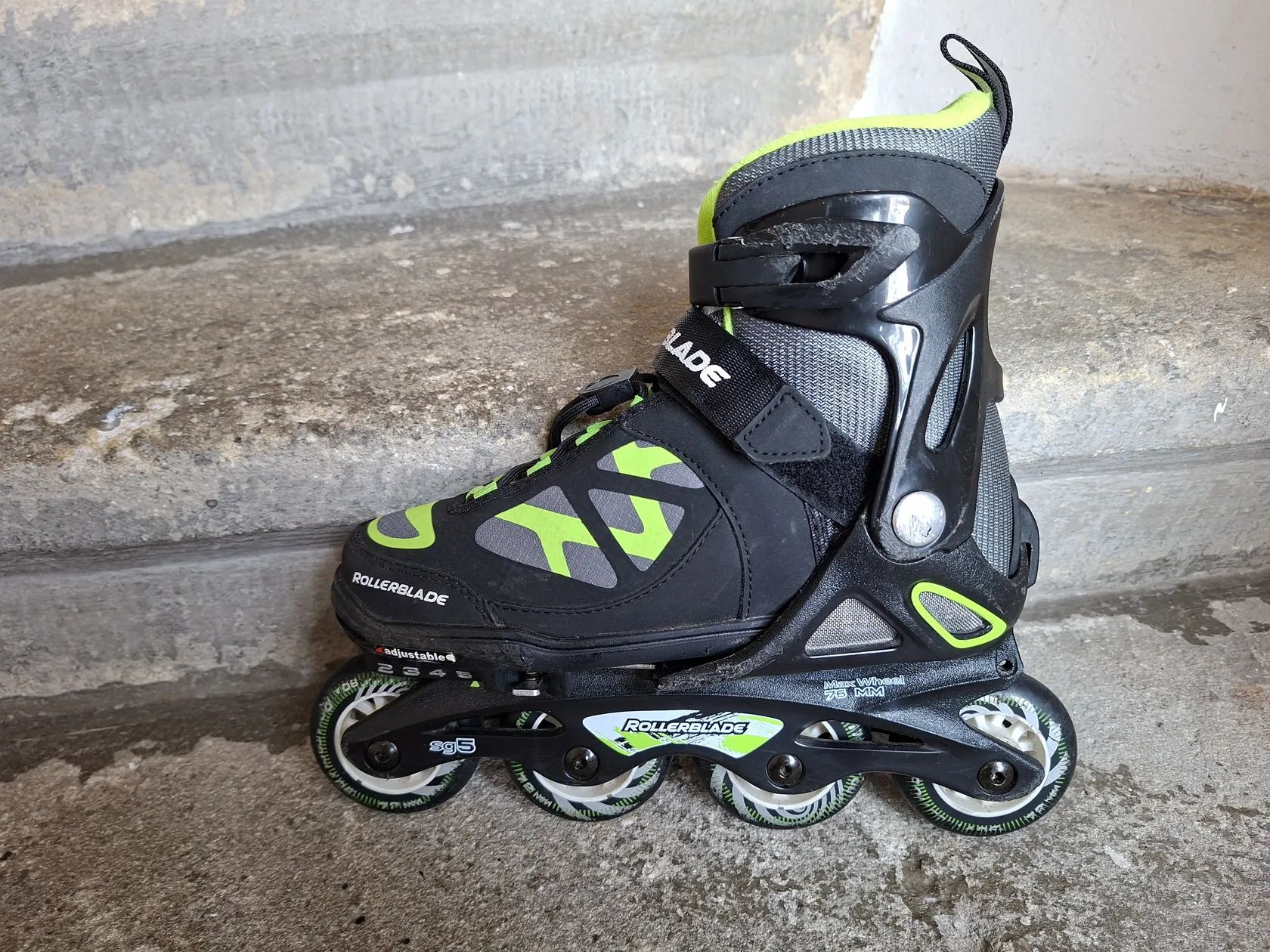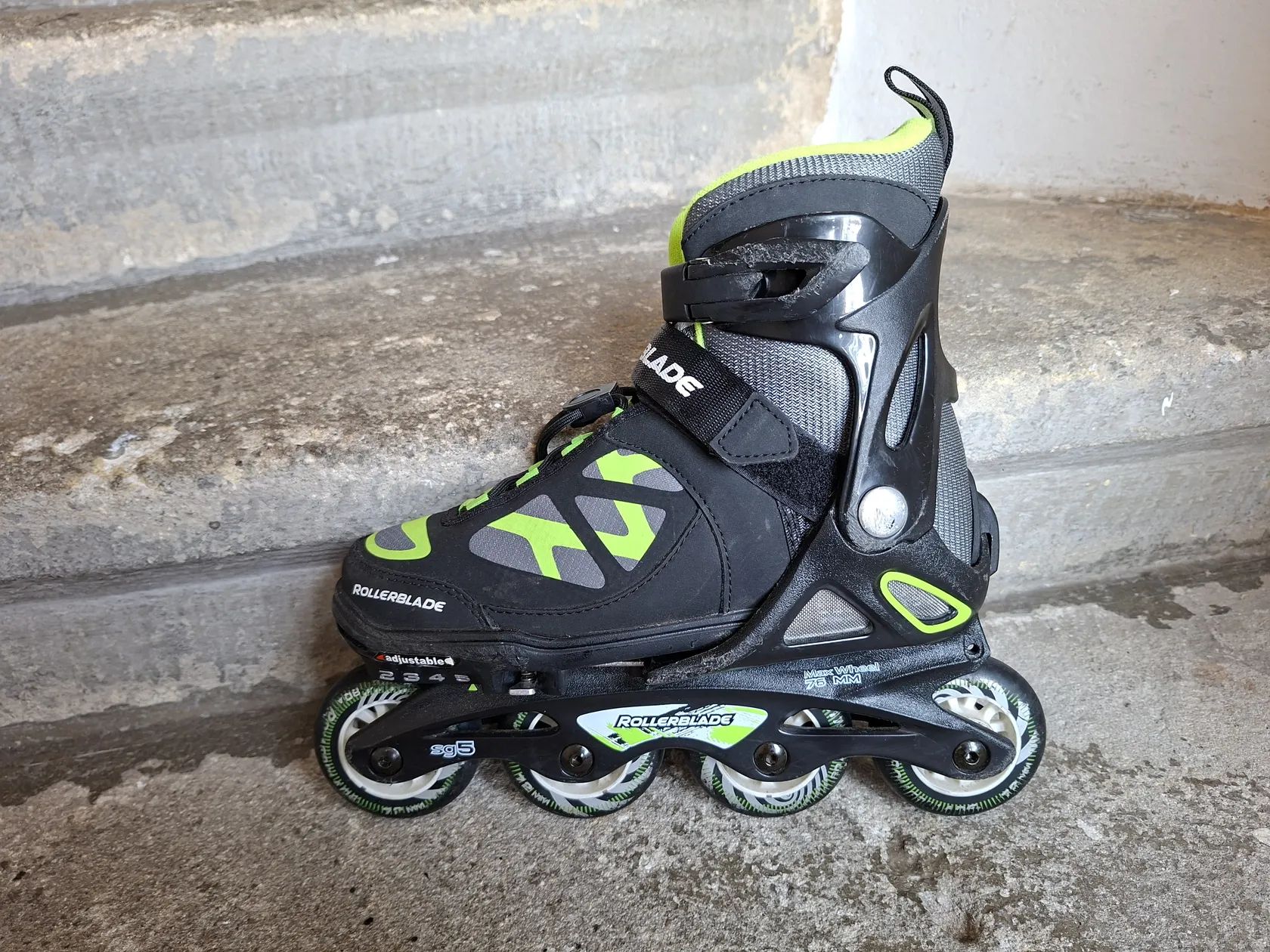 Prodám dětské nastavitelné brusle Rollerblade Spitfire TS. Pomocí tlačítkového mechanismu lze brusle rozměrově přizpůsobit. Kompozitový rám je osazen kolečky o průměru 72 mm s tvrdostí 80A a ložisky SG5. Brusle se upínají pomocí rychloupínacích tkaniček, přezky a suchého zipu.