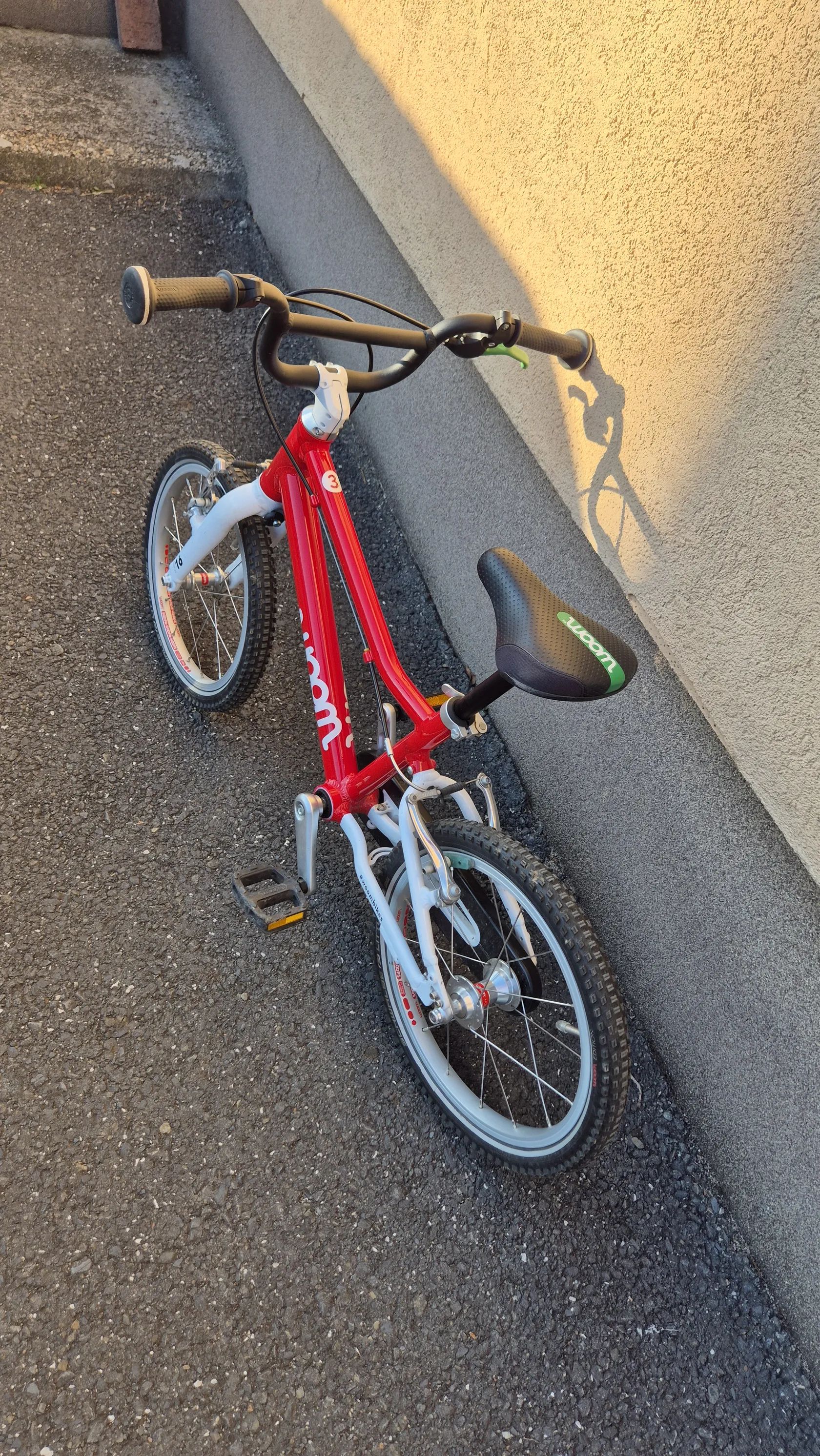Prodám dětské kolo Woom 3 16". Hmotnost 5,4kg. Kolo má běžné oděrky od používání dítětem, jinak v bezvadném stavu. Ke kolu zdarma přidám vlečné samonavijeci lano TIR Bike. Nejlépe osobní odběr, případně mohu přiblížit do 20 km. Okres Ova, Frýdek-Místek, Karviná. Cena 7 900 Kč