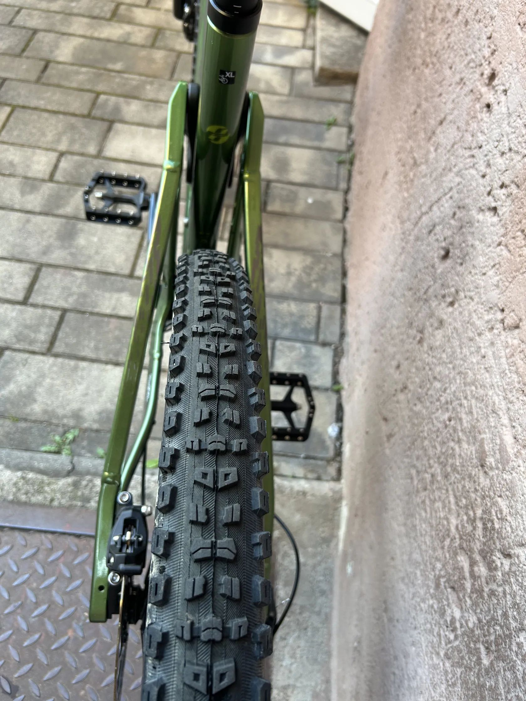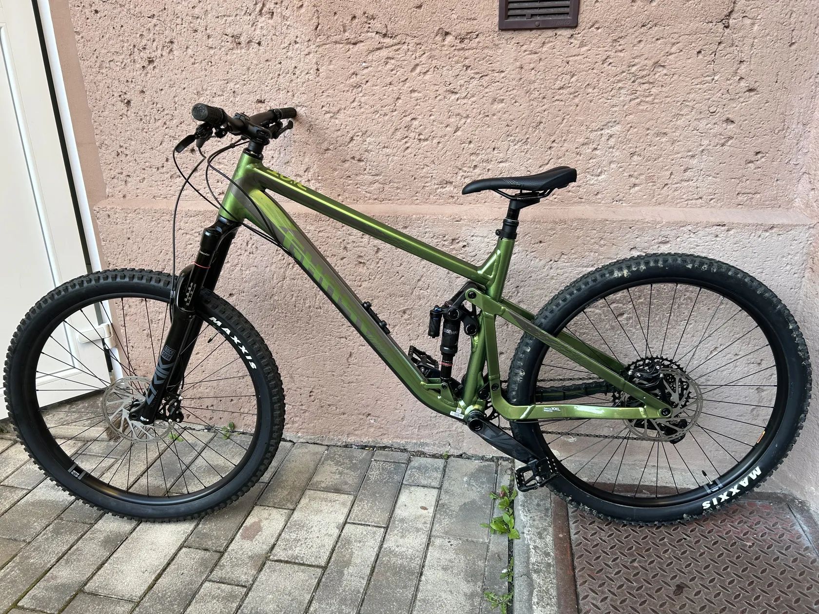 GHOST Riot AM Universal 29 Olive Green/Grey; vel. XL Zánovní, koupeno 08/2024 v Německu, záruka 4 roky GHOST Riot AM Universal na lehkém, přesto pevném hliníkovém rámu a vidlici Rock Shox Lyrik Select s řazením SRAM GX Eagle 1x12 rychlostí je jako stvořený pro zábavu. PC: 86 990 Kč Nyní: 47 990 Kč Technická specifikace • Rám:RIOT AL (vel. XL) • Materiál:hliník • Vidlice:Rock Shox Lyrik Select 160 mm • Zdvih přední:160 mm • Tlumič:Rock Shox Super Deluxe Select+ 150 mm • Zdvih zadní:150 mm • Hlavové složení:Acros AZX-203 • Přehazovačka:SRAM GX Eagle 12-S • Řazení:Sram GX EAGLE • Počet rychlostí:1x12 • Kazeta:SRAM PG-1230 11-50 • Řetěz:SRAM GX Eagle • Kliky:SRAM GX Eagle 32T • Středové složení:SRAM DUB BSA • Brzdy:SRAM G2 RSC 200 mm / SRAM Centerline 200 mm • Brzdové páky:SRAM G2 RSC • Náboje:Shimano HB-MT400-B 15x110 mm / Shimano FH-MT400-B 12x148 mm • Ráfky:WTB ST i30 / WTB ST i30 • Plášť přední:Maxxis Minion DHF 3C MaxxTerra Exo 2.3 • Plášť zadní:Maxxis Aggressor Exo 2.3 • Sedlovka:Limotec Alpha 1 34.9 mm 170 (L/XL) • Sedlo:WTB Volt • Představec:Syntace Megaforce2 Dia. 31.8 mm • Řídítka:Syntace Vector 7075 high20 780 mm • Gripy:WTB Wafel • Velikost kol:29 • Barva:Zelená Nově vyvinuté přepákování zadní stavby Traction Link® přináší hory zábavy, maximální kontrolu a tuhost ve sjezdech – a přitom vás neomezuje ani při stoupáních. Moderní geometrie s vzpřímenou sedlovkou, položenou vidlicí a delšími zadními vzpěrami vychází z unikátního algoritmu SUPERFIT®, který dokonale přizpůsobuje délky rámových trubek výšce jezdce. Kupováno v Německu-doklad o koupi. Velikost rámu XL(já měřím 188cm a super).