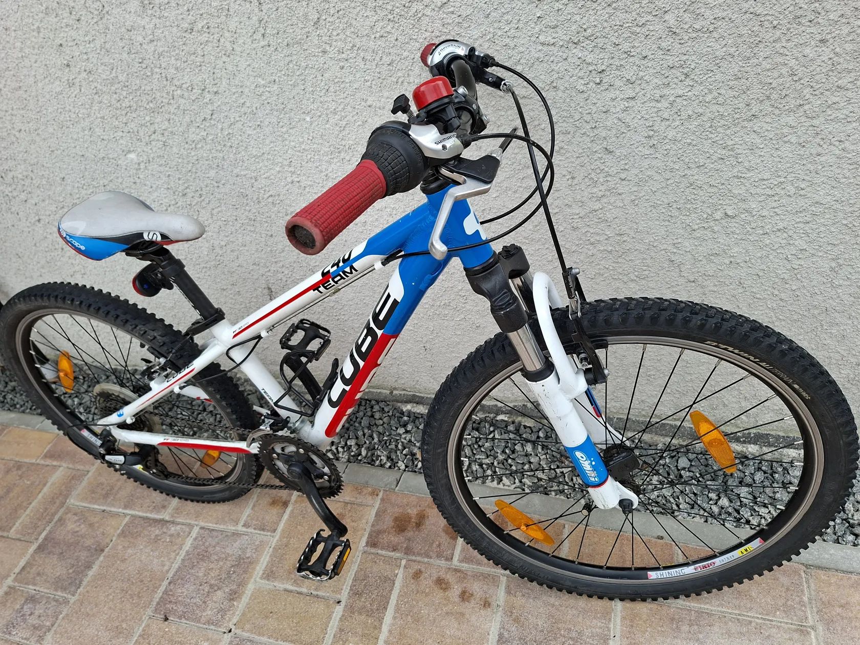 Dětské juniorské kolo. Vel.24" vhodné pro děti 8-12 let (125-155cm). Alu rám, odpružená přední vidlice 21 rychlostí (3×7) se systémem Shimano. Kolo je po servisu seřazené a promazané.