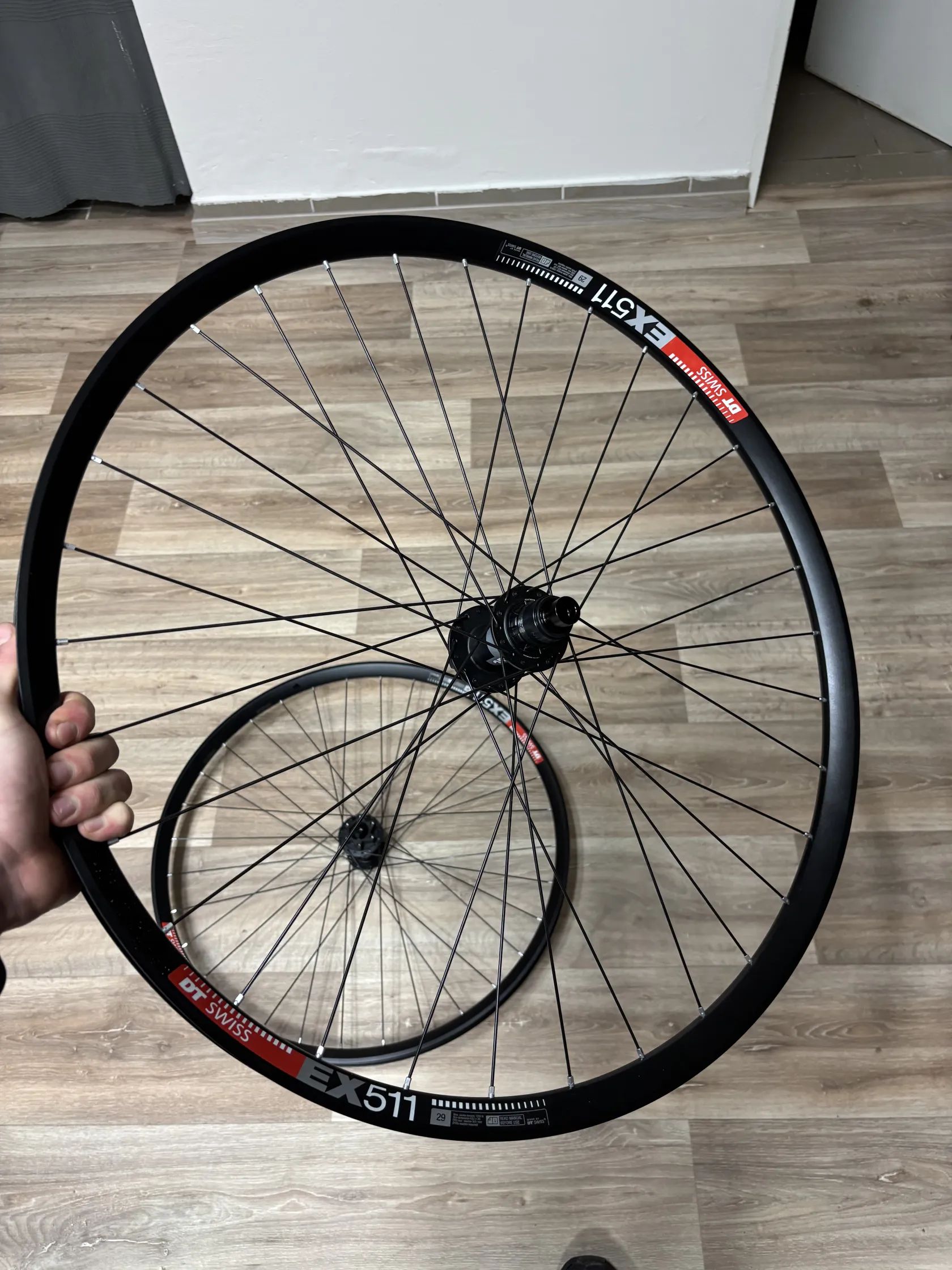 Prodám nová zapletená kola DT SWISS EX511 s náboji dt swiss 370 Jedná se o velmi slušný poměr/cena/výkon Vhodné na trail/allmountain/enduro ježdění Velikost kol: 29” Ořech: Xd Uchycení kotouče na 6 děr Náboje 110/148mm (boost) Cena setu je 9900,- Při rychlém jednání se dá domluvit na ceně