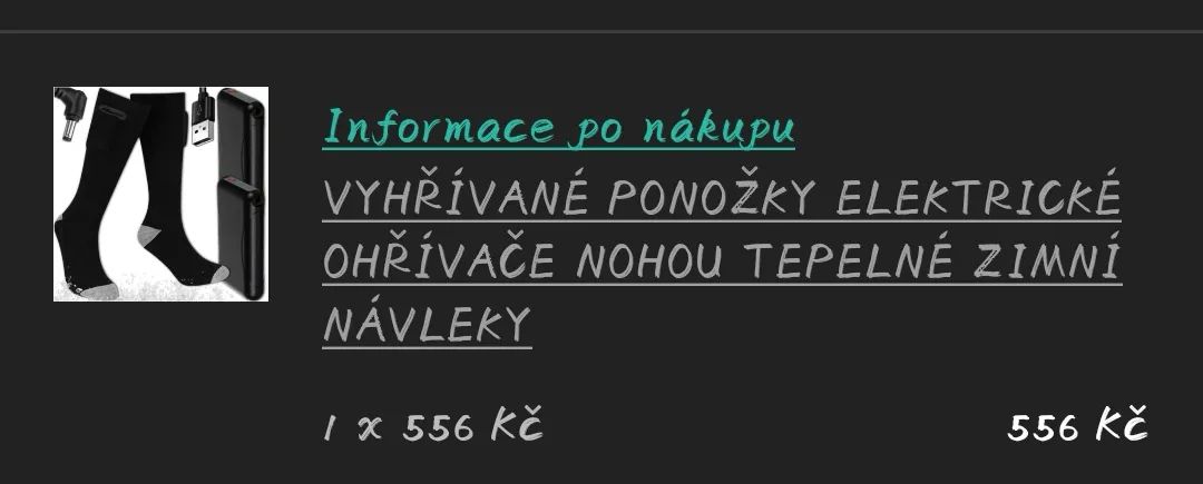 Prodám vyhřívané ponožky velikost 9.5-10.5. Použití na kolo... Lyže... Procházku.. Nebo jen tak doma. Použito jen jednou. Nevyužité. Původní cena 556. Nyní 250 Kč.