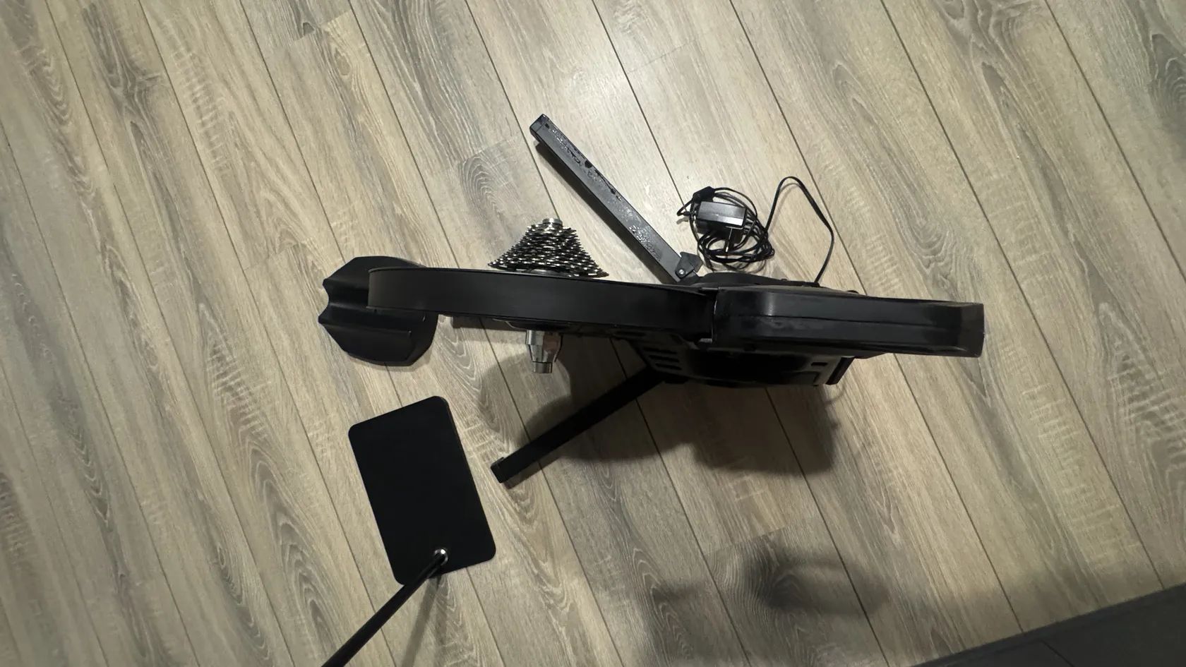 Součástí je podložka pod přední kolo, kazeta Shimano Ultegra 11sp, redukce pro 12mm osu a super držák telefonu/tabletu!