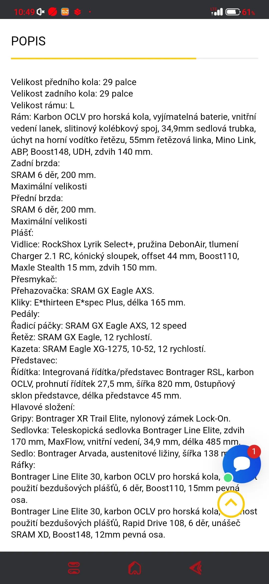 | Průměr kol: | 29" |