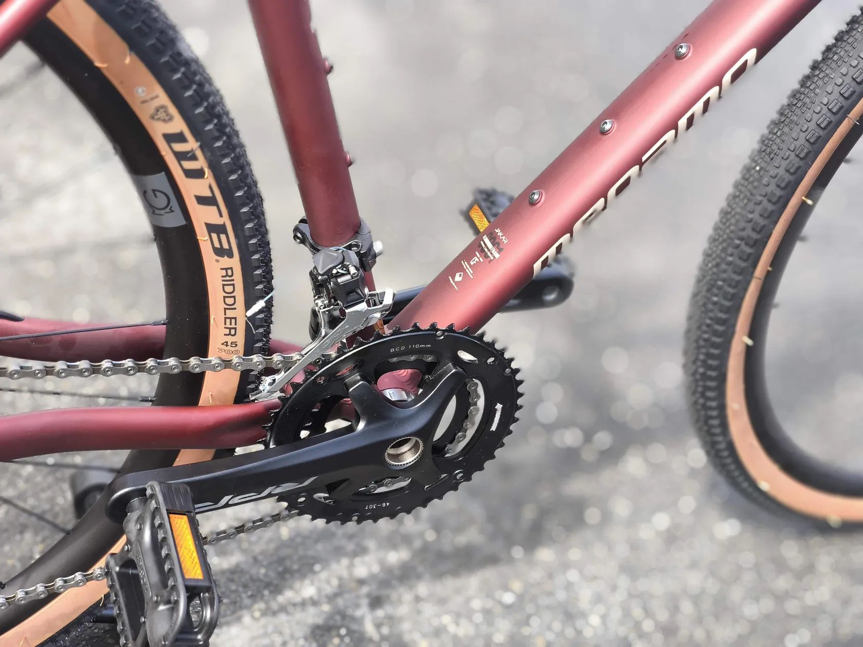 - Moderní gravel rám z hliníku AL 6061 – lehký, pevný a připravený na zátěž
