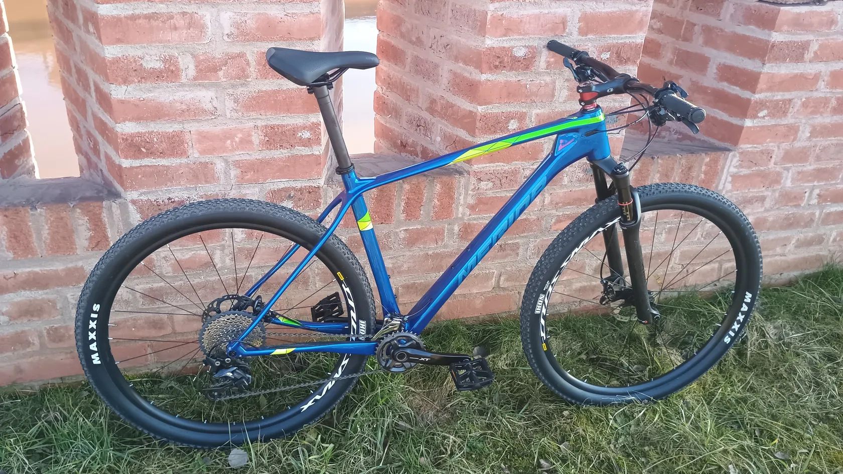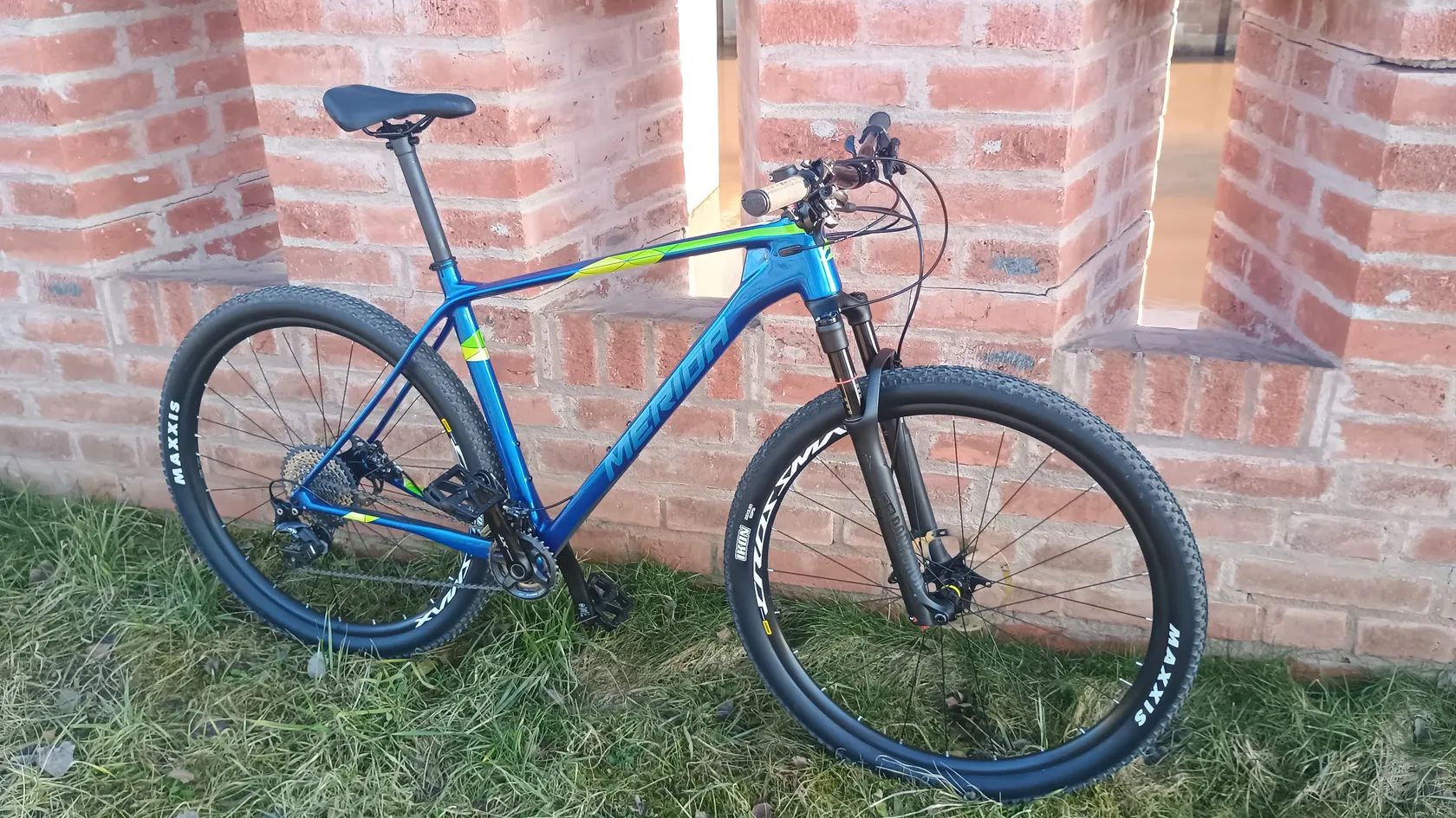 Kolo je jako nové,najeto pouze cca 100 km!!! Velikost XL na postavu cca 182-195 cm. Sedlo je vysunuté na postavu 184cm,ale mám hodně dlouhé nohy.Ke kolu dám sportovnější sedlo...Na kolo jsem dal ergonomické gripy, které na fotkách nejsou Výbava: Rám - Merida Big Nine XT carbon,pevné osy, Vidlice - Rock Shox Reba 29 uzamykatelná z řídítek, Brzdy a brzd.kotouce- Shimano XT, Přehazovačka a řazení - Shimano XT 2x11, Kliky -Shimano XT -34,24 zubů, Přesmykač -Shimano XT, Kola- Boost Mavic Crosmax 29, Carbonova sedlovka, Řidítka a představec - Crankbrothers Cobalt 3, Kazeta -Shimano SLX, Řetěz -Shimano XT, Pláště Maxxis. Kolo celkově váží jen 11 kg