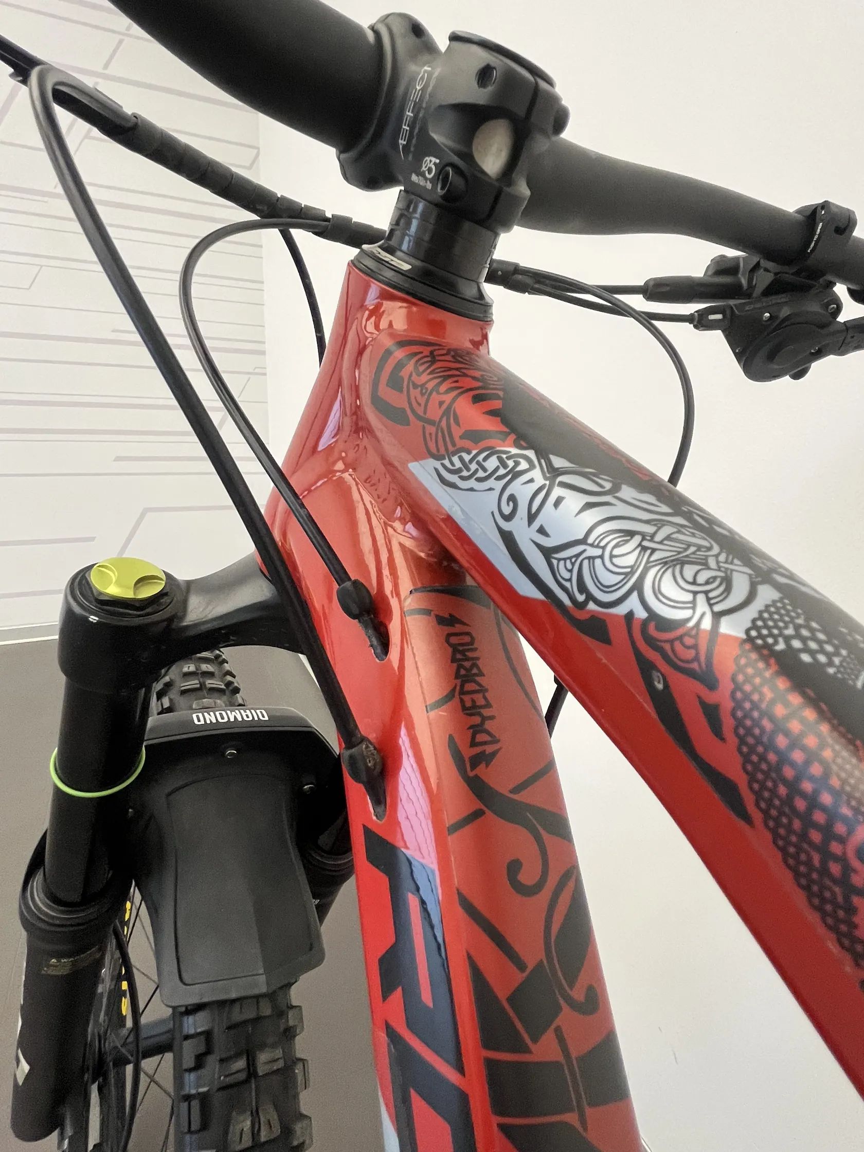Moderní hliníkový rám 6061-T6 s plovoucím čepem – zaměřeno na stabilitu a jistotu ve sjezdech, přitom slušná efektivita do kopce