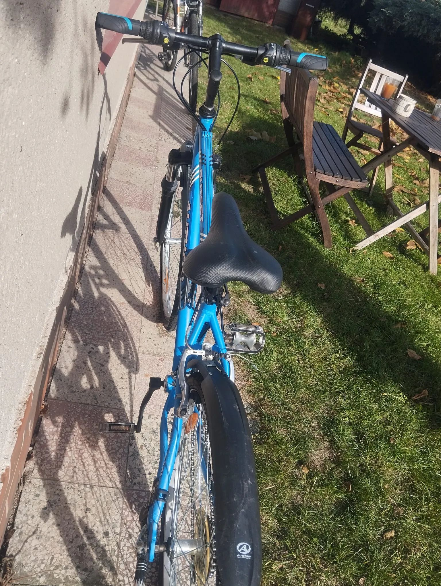 Kolo je v perfektním stavu, nové pláště, původní na horské kolo vyměněné za hladké, převážně jsme jezdili po silnici, přidané blatníky a stojan na kolo.