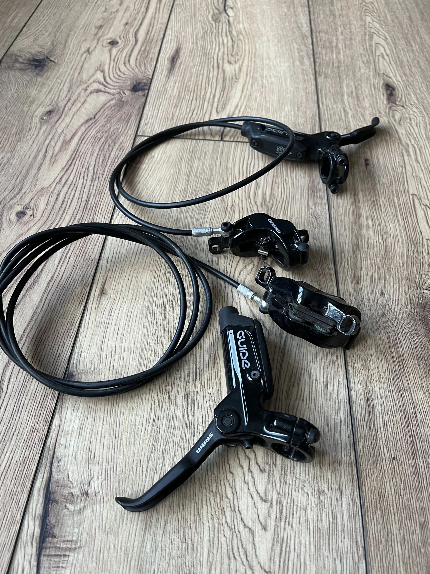 Prodám kotoučové brzdy sram guide t , brzdy jsou sundané z nového kola je na nich najeto 1oo km , destičky jsou jako nové , přední brzda je naplněna, zadní je ropojená.