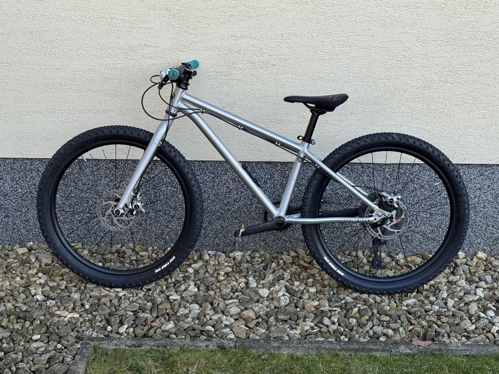 Prodám Early Rider Seeker 24". Určeno pro malé ridery od 8 do 12 let. Moji dva kluci na něm začali jezdit cca od 5,5 let (výška postavy cca 115cm) kdy nasedání a vysedání z kola byl ještě trošku oříšek, ale naučili se to bez problému (záleží jak jste ambiciózní :-). Začali jsme vždy co nejdříve kvůli větším komfortnějším a rychlejším (!!! :-D) kolům. Původní osazení - Box komponenty jsem dal do krabice protože to nefungovalo. Kolo je nyní komplet na Shimano XT (brzdy, přehazovačka, řazení a kazeta), je v bezvadném stavu a za pár oděrkami se skrývá kus příběhu.